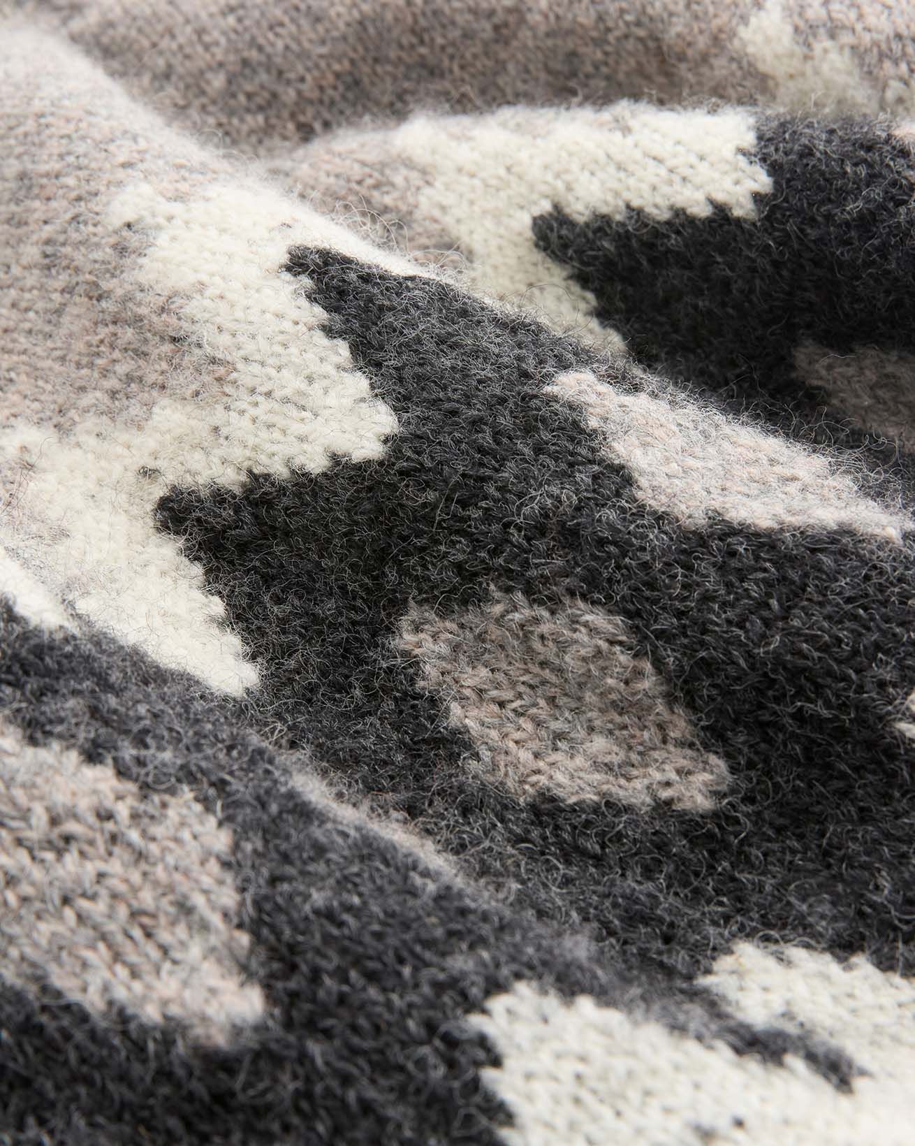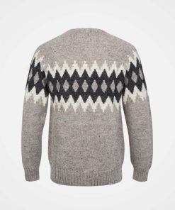 Crafted from British wool, this jumper features a classic crew neckline and a diamond and chevron pattern across the chest and sleeves. The ribbed neck, cuffs, and hem ensure a comfortable fit, showcasing timeless British craftsmanship.