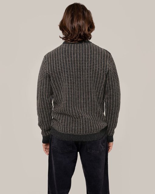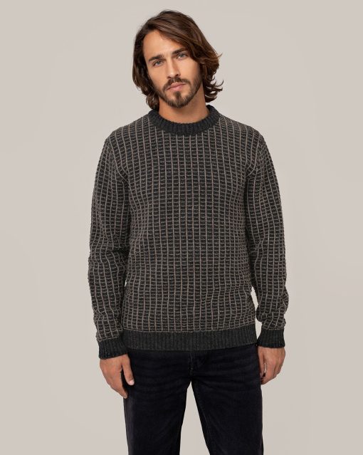 Celtic & Co Men’s Contrast Textured Stitch Jumper | Charcoal