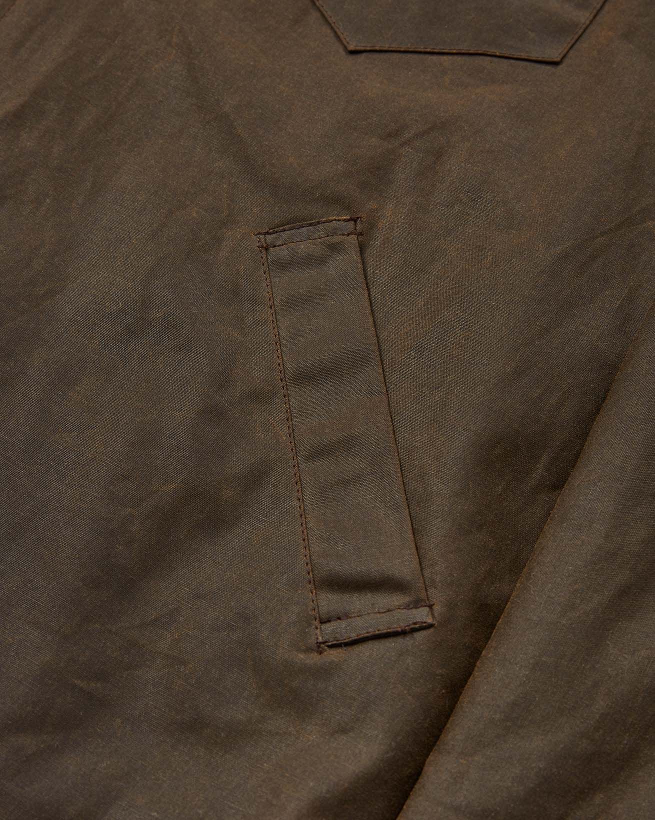 Waxed cotton is a durable, long-lasting fabric that has been infused with a blend of waxes and oils. Our wax cottons have a traditional waxy handle finish, crafted to help protect you against the elements. The material is naturally breathable that adjusts to the ambient temperature, so it gets softer and more breathable in warm weather and stiffer and more wind resistant in cold conditions.