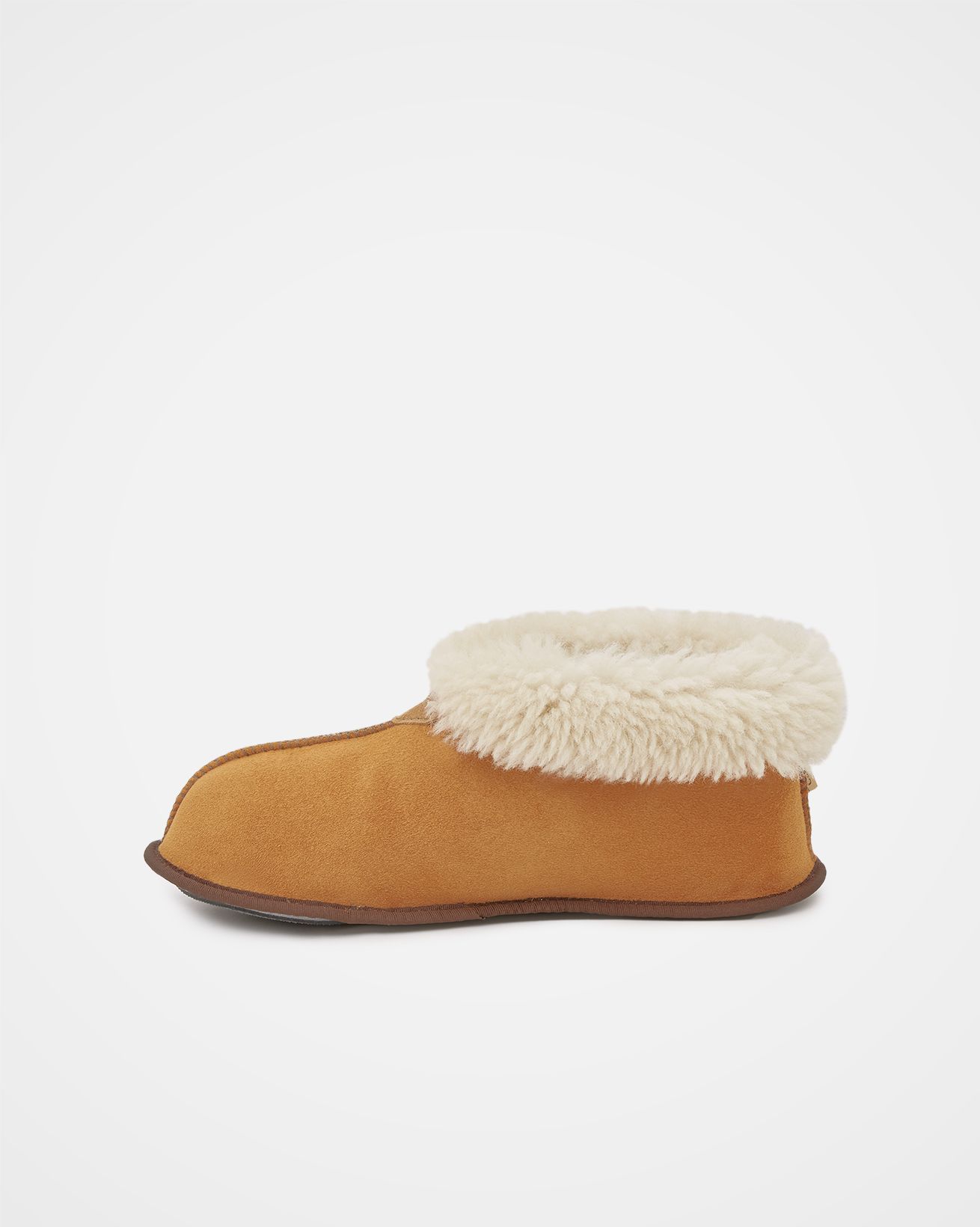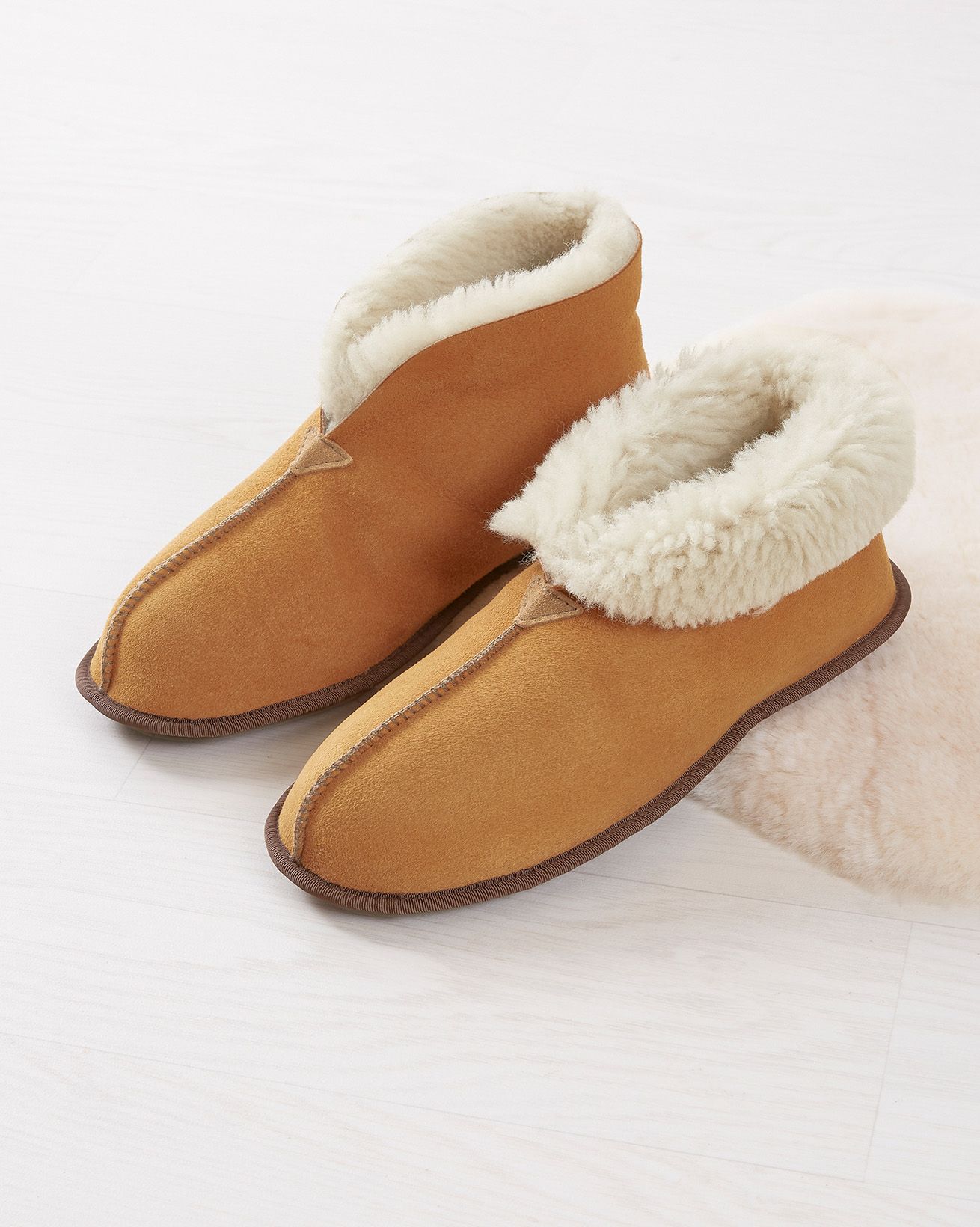 We’ve taken our classic Bootee Slipper to a new cosier level by adding a soft suede sole with textured grippy panels on the bottom. Made to be worn around the house, our sheepskin slippers are a favourite when it comes to loungewear and relaxing. Wear the flexible cuff up for extra warmth or down to reveal the luxurious fluffy lining.
