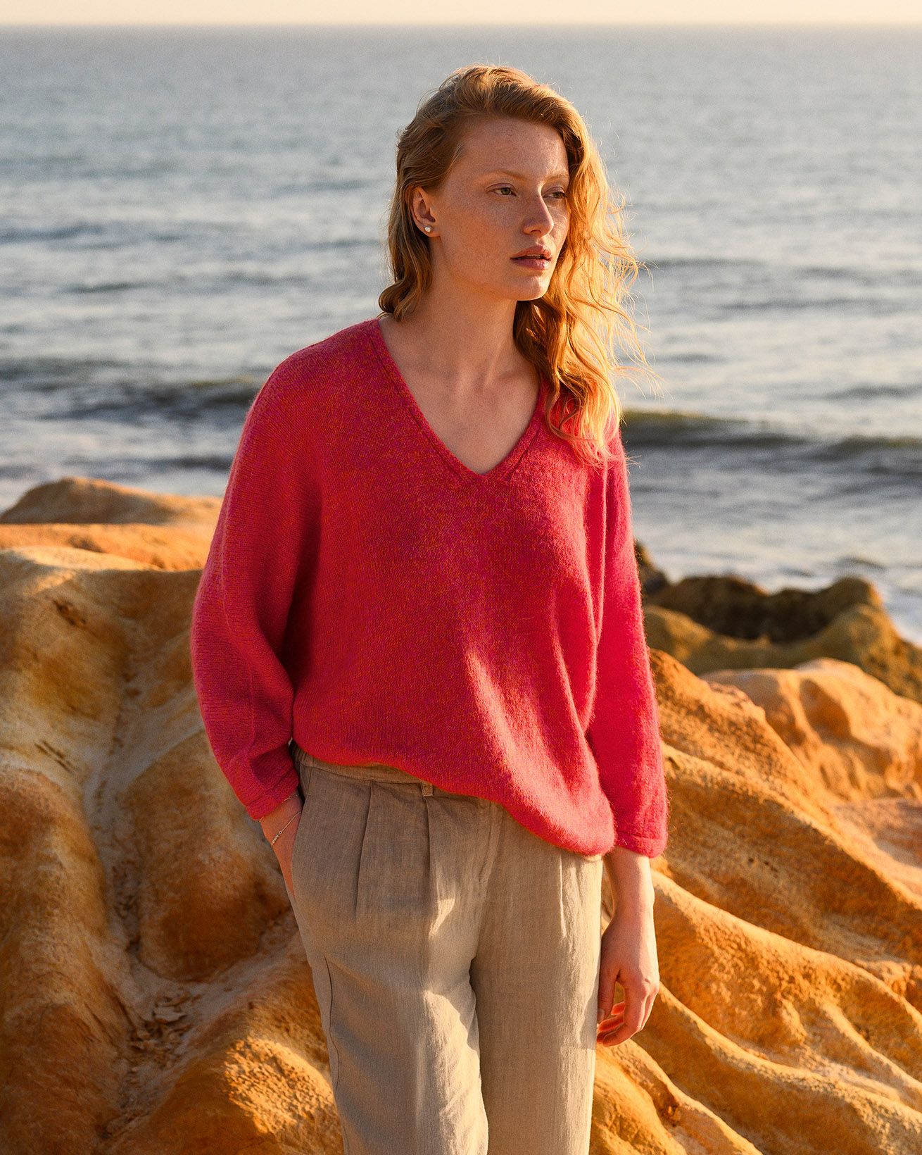 With a V neckline and drop shoulder design, this jumper offers a relaxed fit that drapes beautifully. The slouchy shape ensures comfort while providing effortless style for everyday wear.