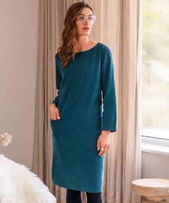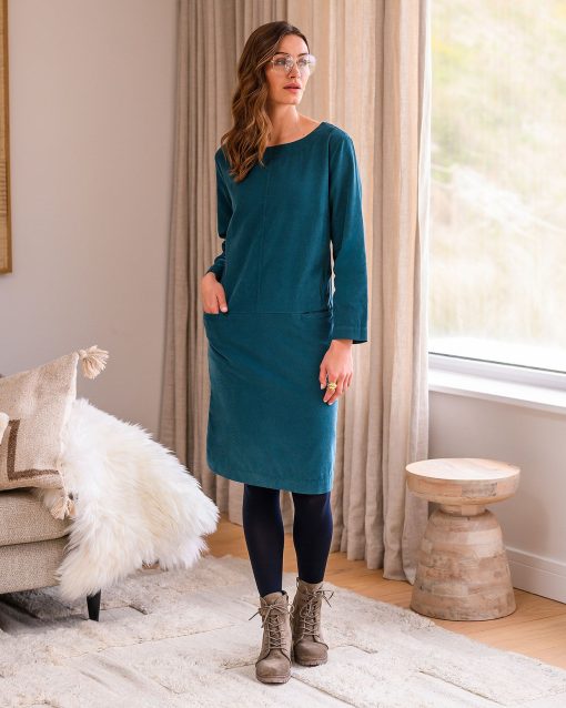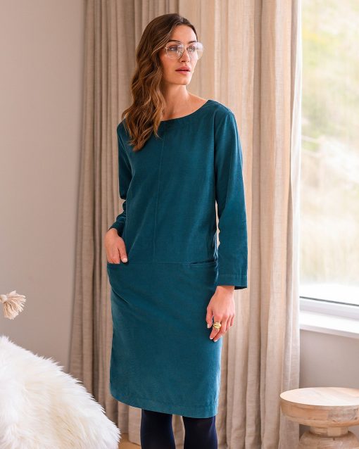 Celtic & Co Women’s Baby Cord Knee Length Shift Dress | Deep Icelandic Blue