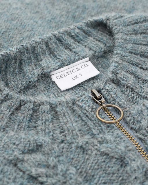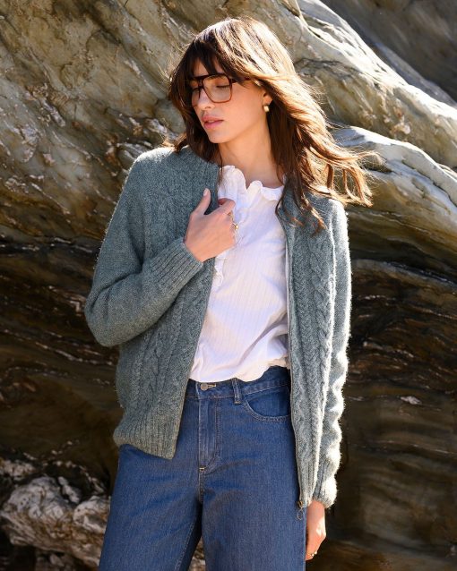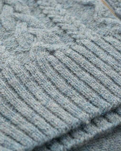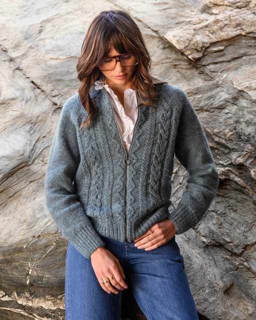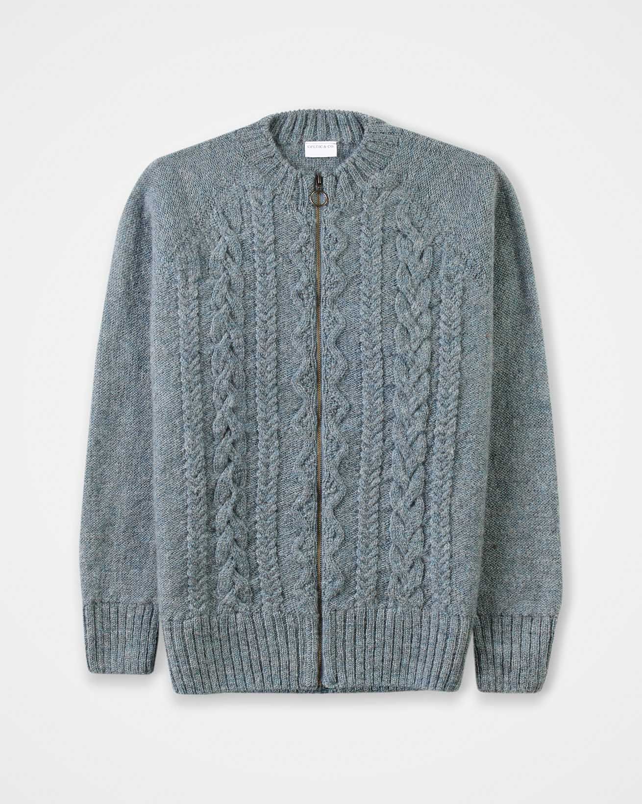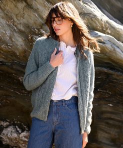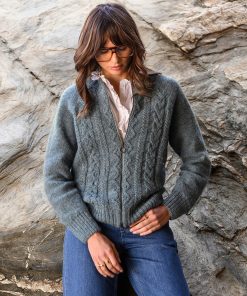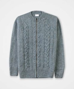 We’re proud to say that from farm to factory, our Cable Zip Cardigan is produced entirely in Britain! The colour way of this cardigan is totally natural as no dyestuffs were used in the process of creating the yarn. Natural fibres allow your skin to breathe whilst keeping you warm in winter. Details include cabling running down the body, a crew neck, ribbed cuffs, collar and hem and a metal zip down the centre.