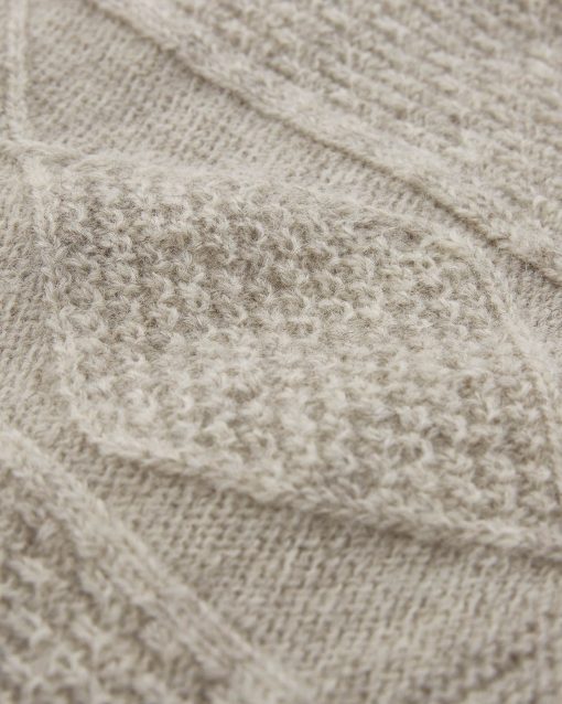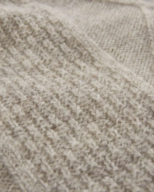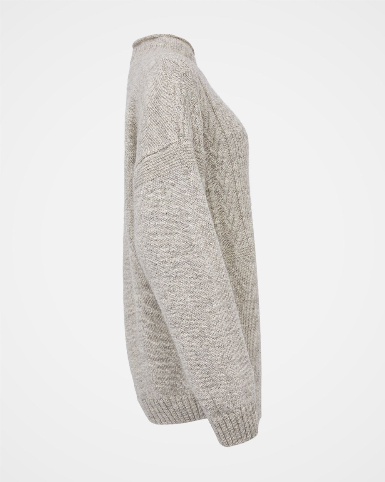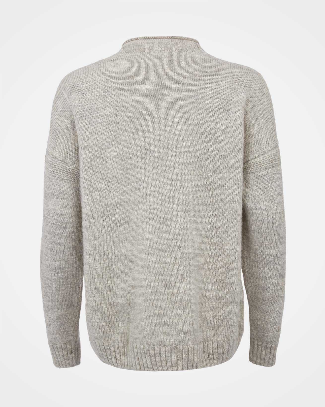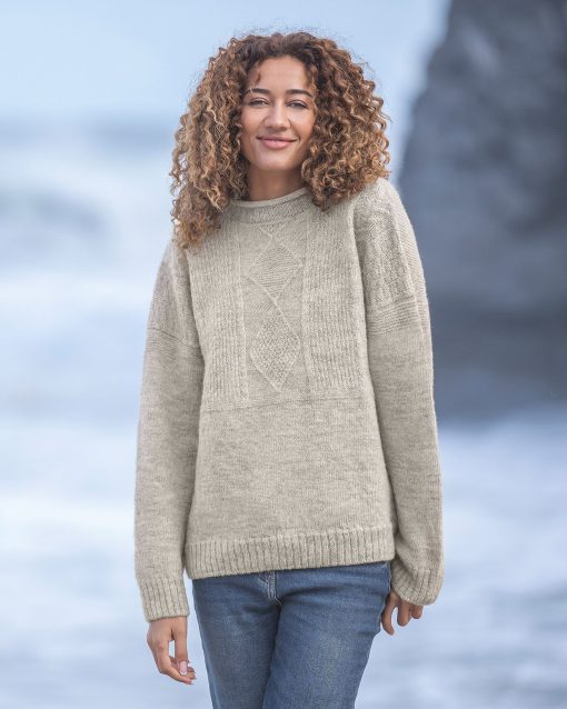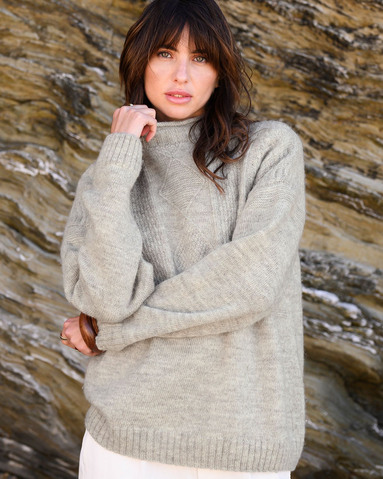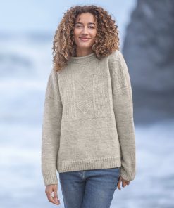 We’re proud to say that from farm to factory our beautiful Gansey jumper is produced entirely in Britain. A take on the traditional fisherman’s Gansey jumper, we’ve been inspired by stitch patterns used historically in Cornish fishing villages. Details include a boxy, drop shoulder body shape with T sleeves and a ribbed and cast off rolled collar. Panelled stitch patterns run across the top half of the jumper, plus it is ‘knitted in the round’, meaning it is seamless, just as the traditional fisherman’s jumpers were made. Made using undyed wool, the natural fibres keep you warm in cold weather, but are breathable too.