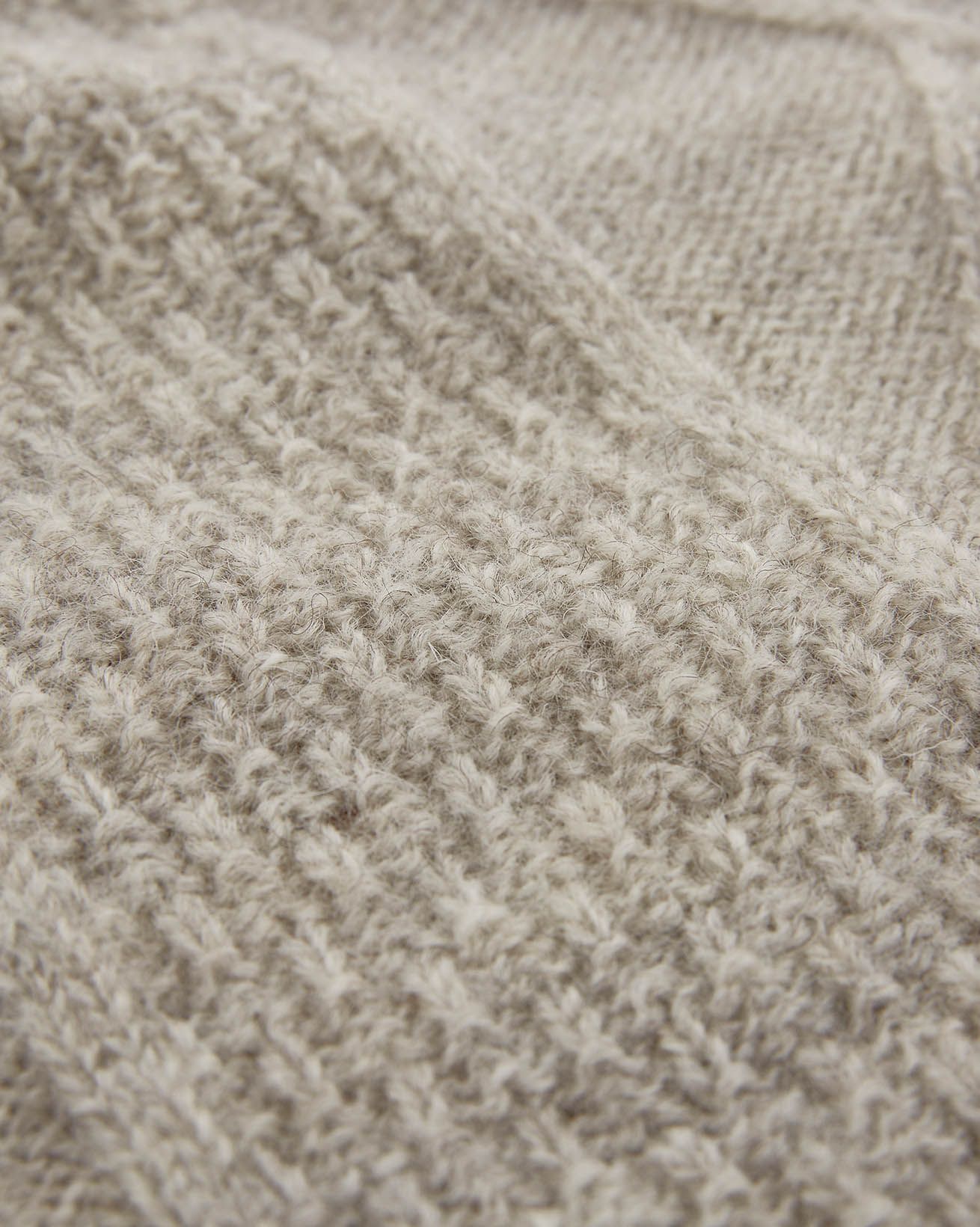 This yarn is a blend of premium British fleeces finished within a 50 mile radius of the spinner. We use the wool in a factory in the Leicester area meaning the entire process, from fleece to finished jumper, is kept in the UK. End to end British wool.