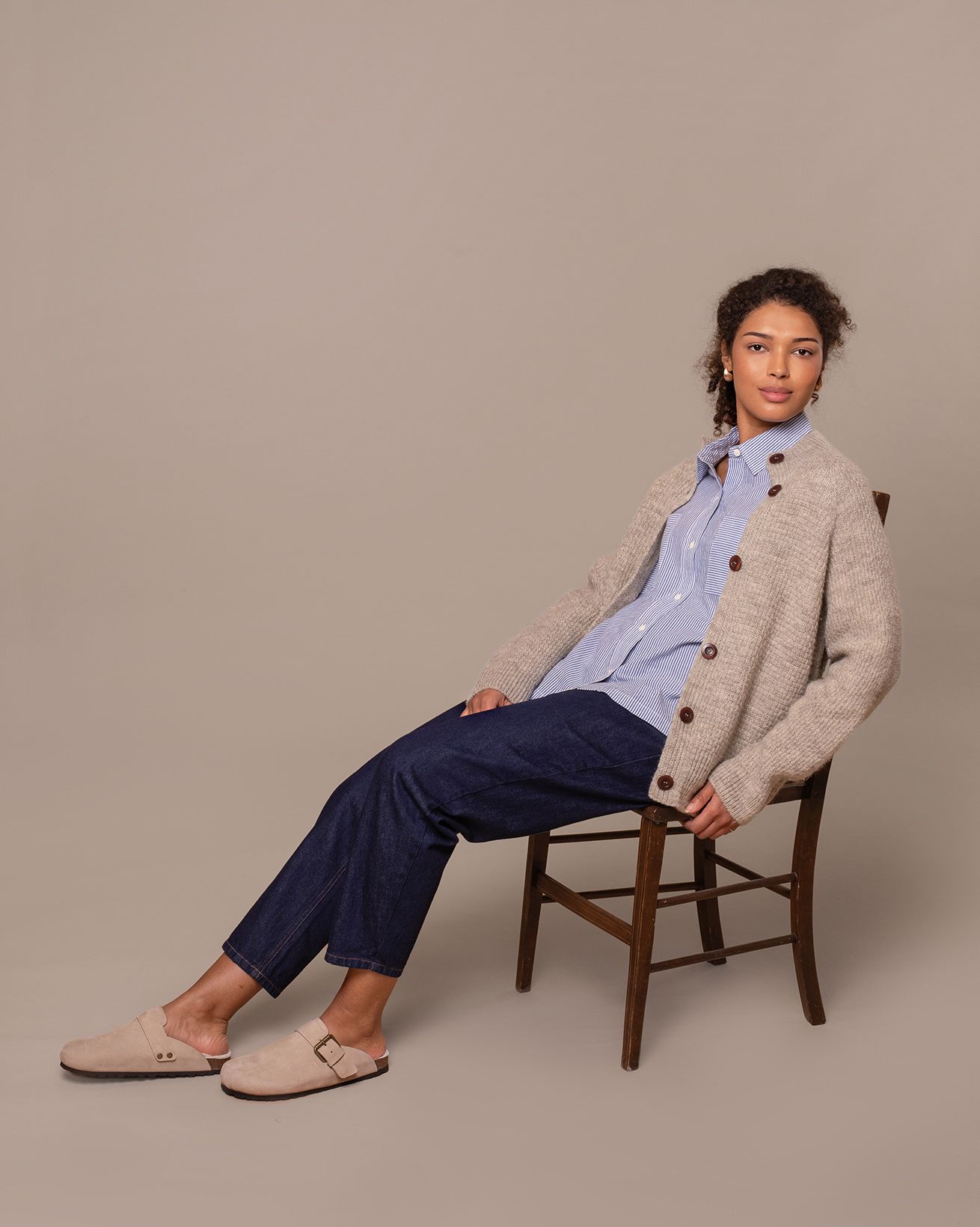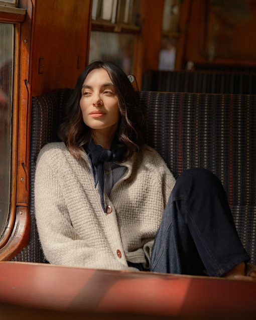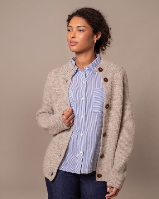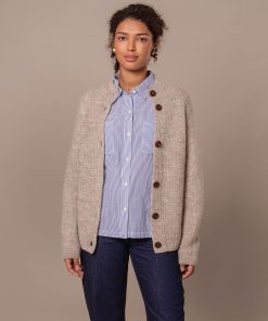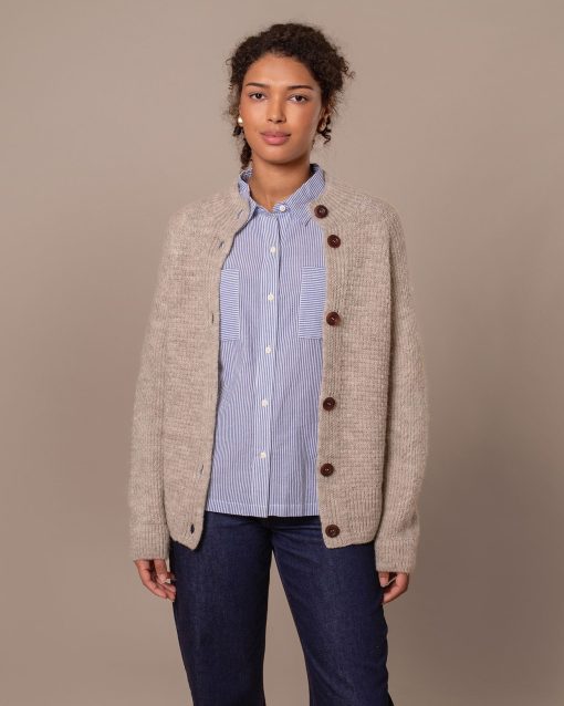 Celtic & Co Women’s British Wool Moss Stitch Cardigan | Undyed Taupe