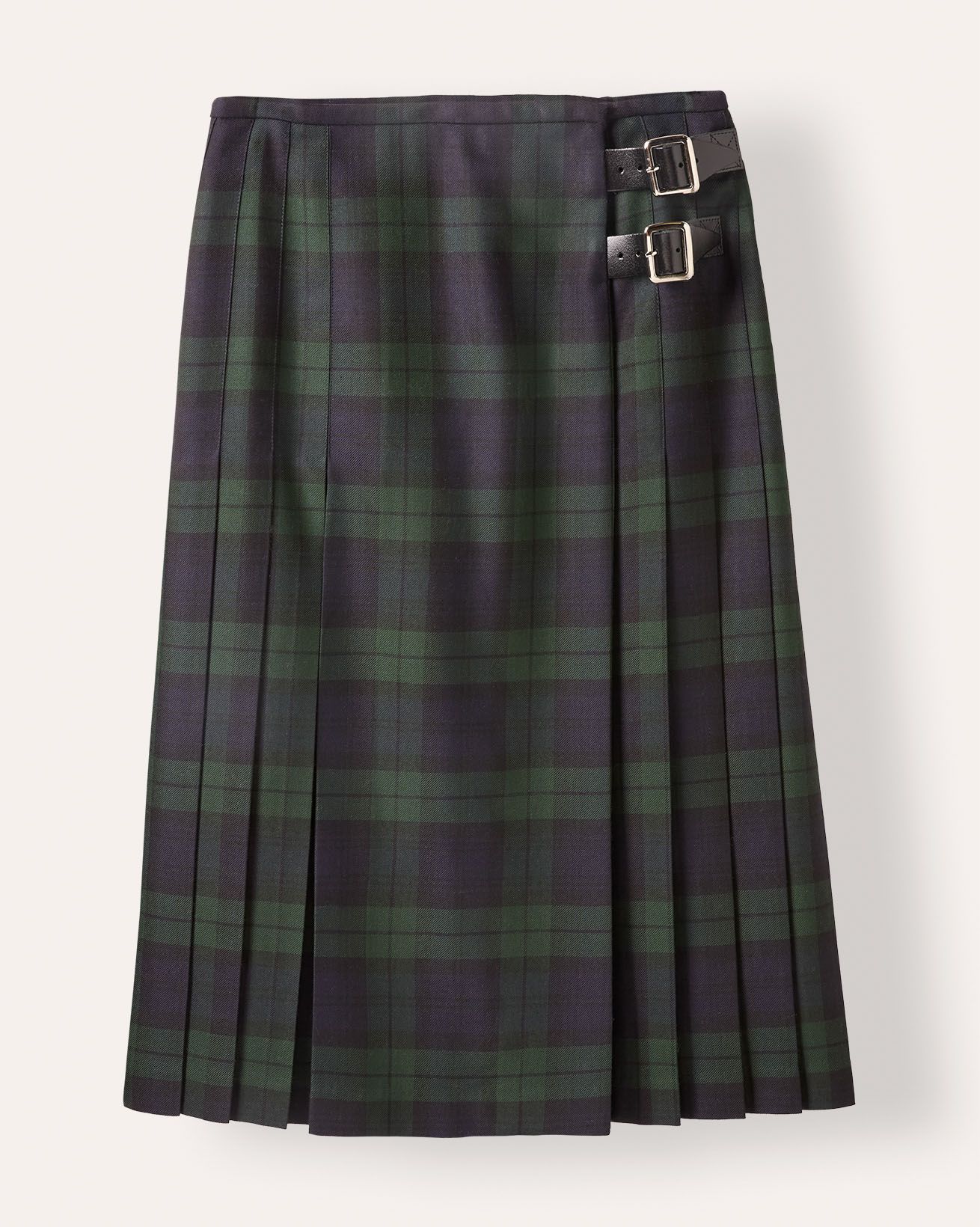 The Check Pleated Midi Kilt features a fully pleated wrap design with double leather buckle trim for a refined finish. Made from worsted wool and fully lined for comfort, this piece combines heritage craftsmanship with practical detailing. Made in Britain.