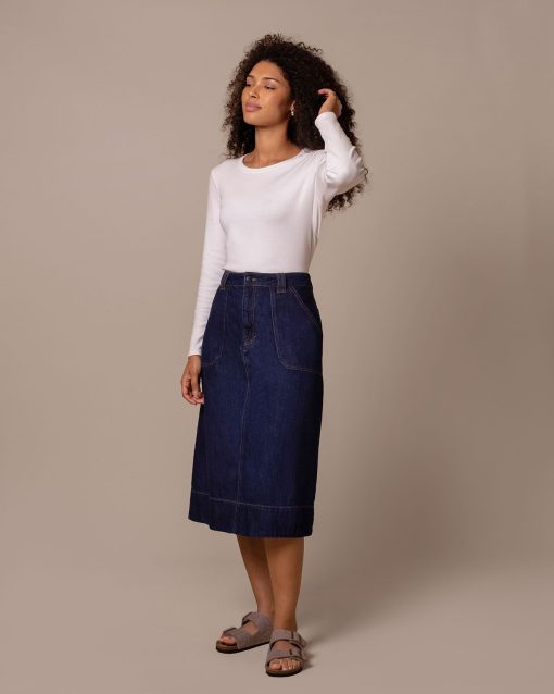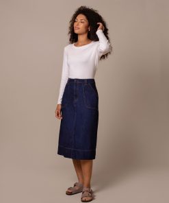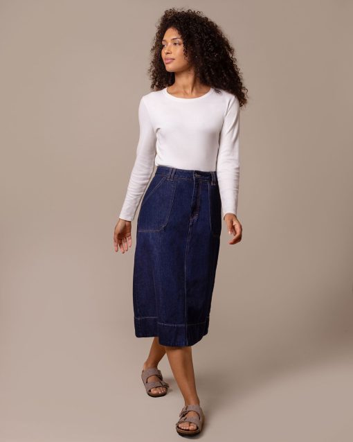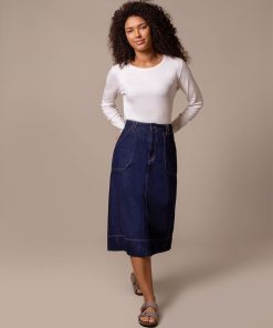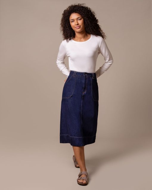 Celtic & Co Women’s Denim A Line Midi Skirt | Rinse Wash