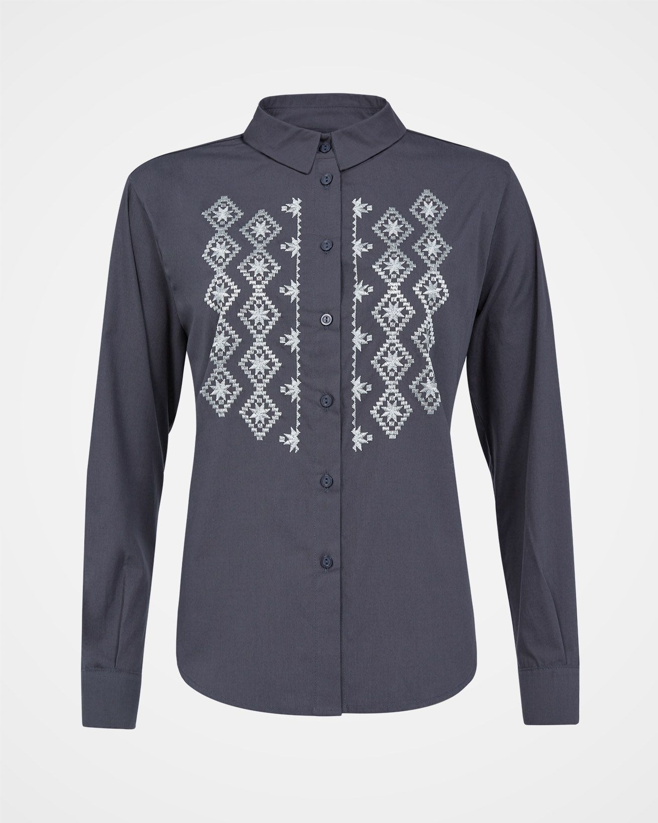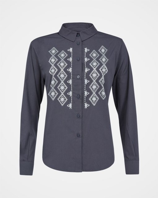 Celtic & Co Women’s Embroidery Detail Blouse | Slate Grey