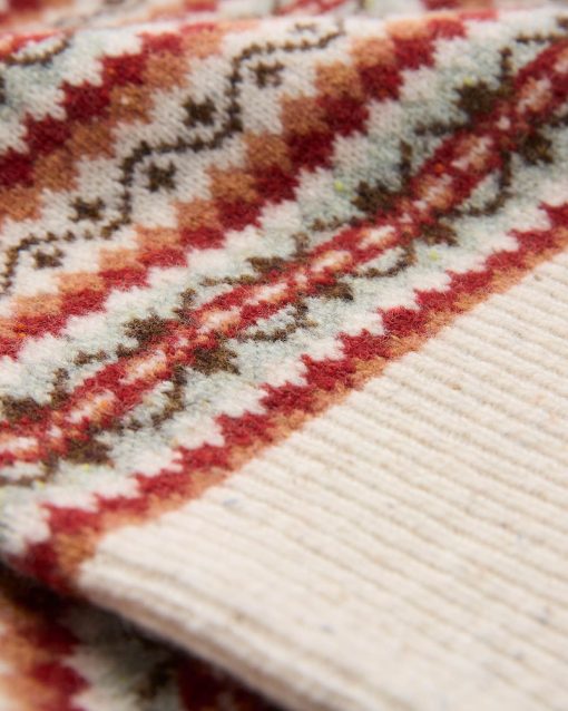 The classic Fair Isle motif plays around the seamless yoke and is mirrored at the hemline for a balanced effect that’s right at home with your most loveworn denim.