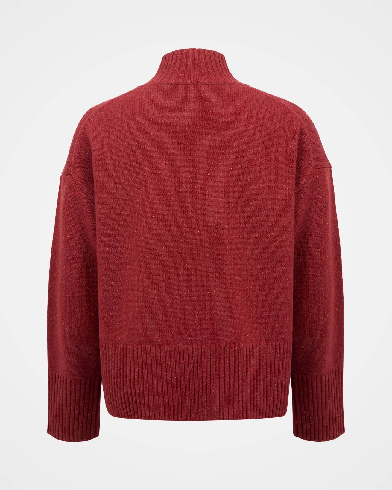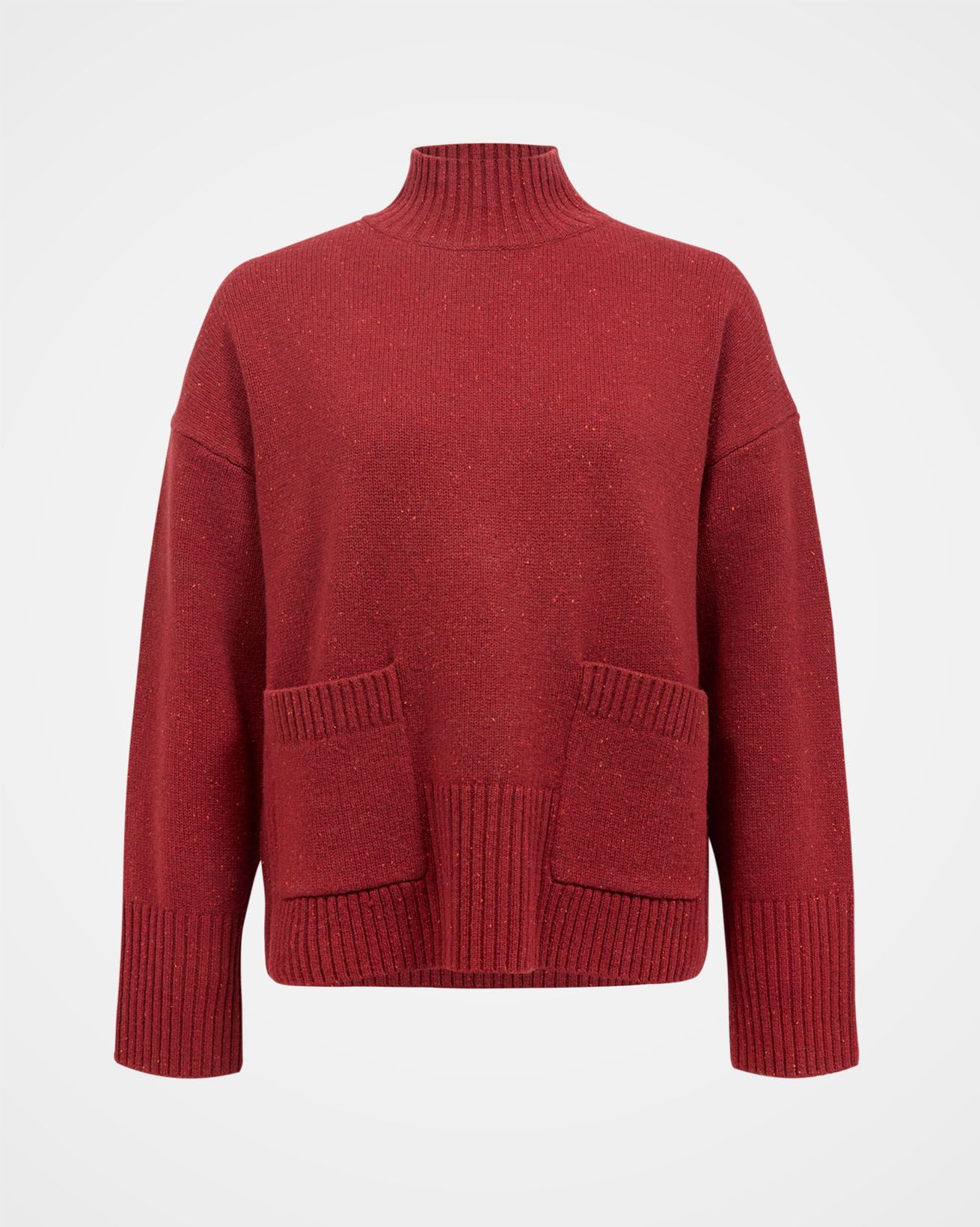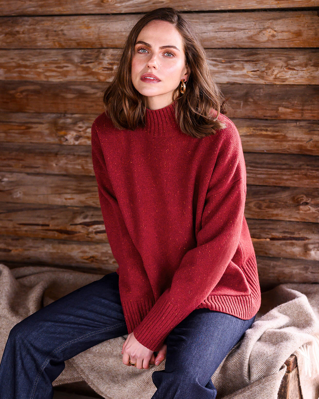 The minimal style of this lovely jumper allows the beautifully flecked yarn to sing. Crafted from wool, it is warm, soft and breathable, and features patch pockets on the front and a chunky, ribbed, funnel neck collar. The boxy shape is accentuated by the drop shoulder and details include ribbing at the cuff and hem. A great everyday jumper for all occasions.