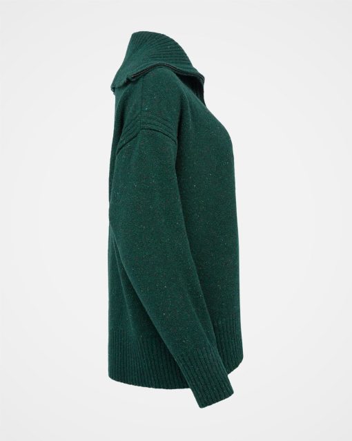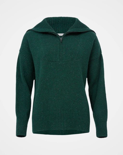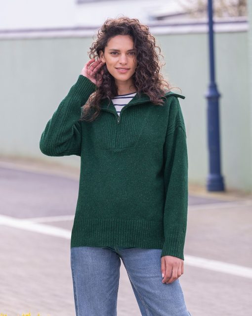 Celtic & Co Women’s Flecked Zip Neck Jumper | Bottle Green