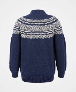With a classic funnel neckline and seamless construction, this jumper offers a comfortable fit with a touch of British made flair. Its reverse float stitch fair isle pattern on the yoke adds visual interest.