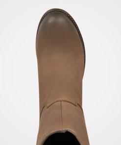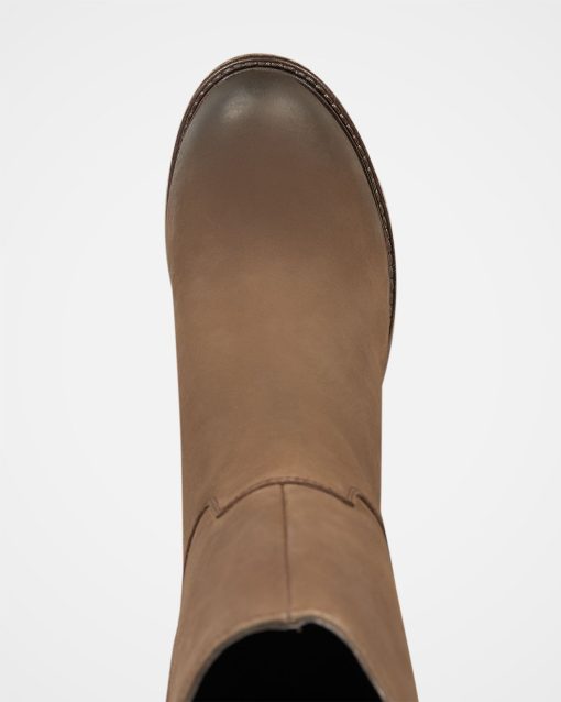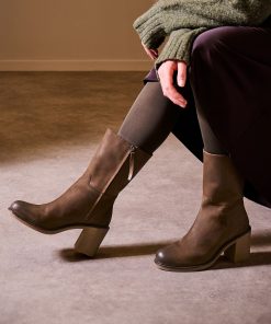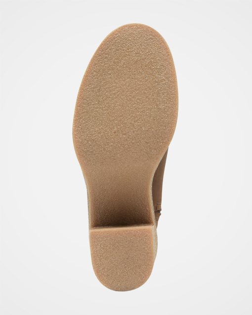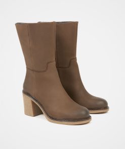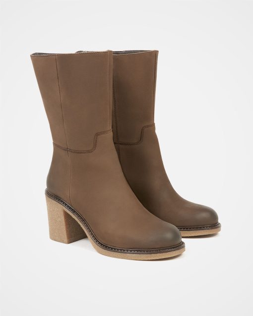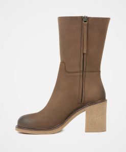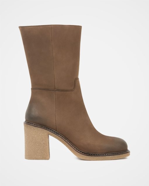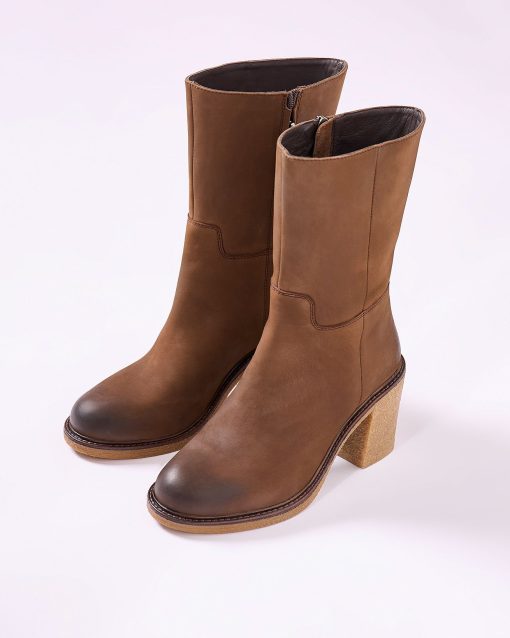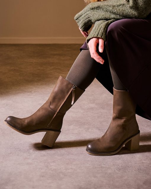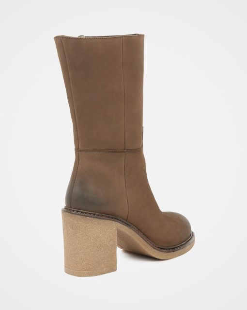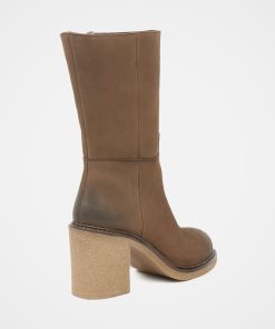 Crafted with a nubuck upper and leather lining, these boots ensure both quality and comfort. With a crepe rubber sole and block heel, they offer simplicity of style, complemented by a convenient zip opening for ease of wear.