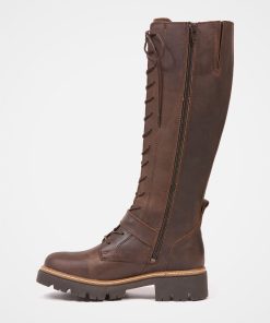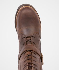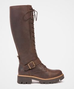 Featuring leather or suede for the upper, these knee-high boots offer lace-up detailing complemented by buckle and strap accents at the ankle. The leather lining adds comfort, while the chunky cleated sole with a contrast welt provides a sturdy and distinctive finish.