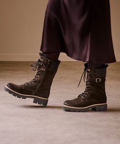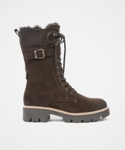 Our latest calf boots feature a suede upper and sheepskin trim, along with lacing detail adorned with buckle and strap trim. They’re finished with a chunky cleated sole unit and contrast welt.