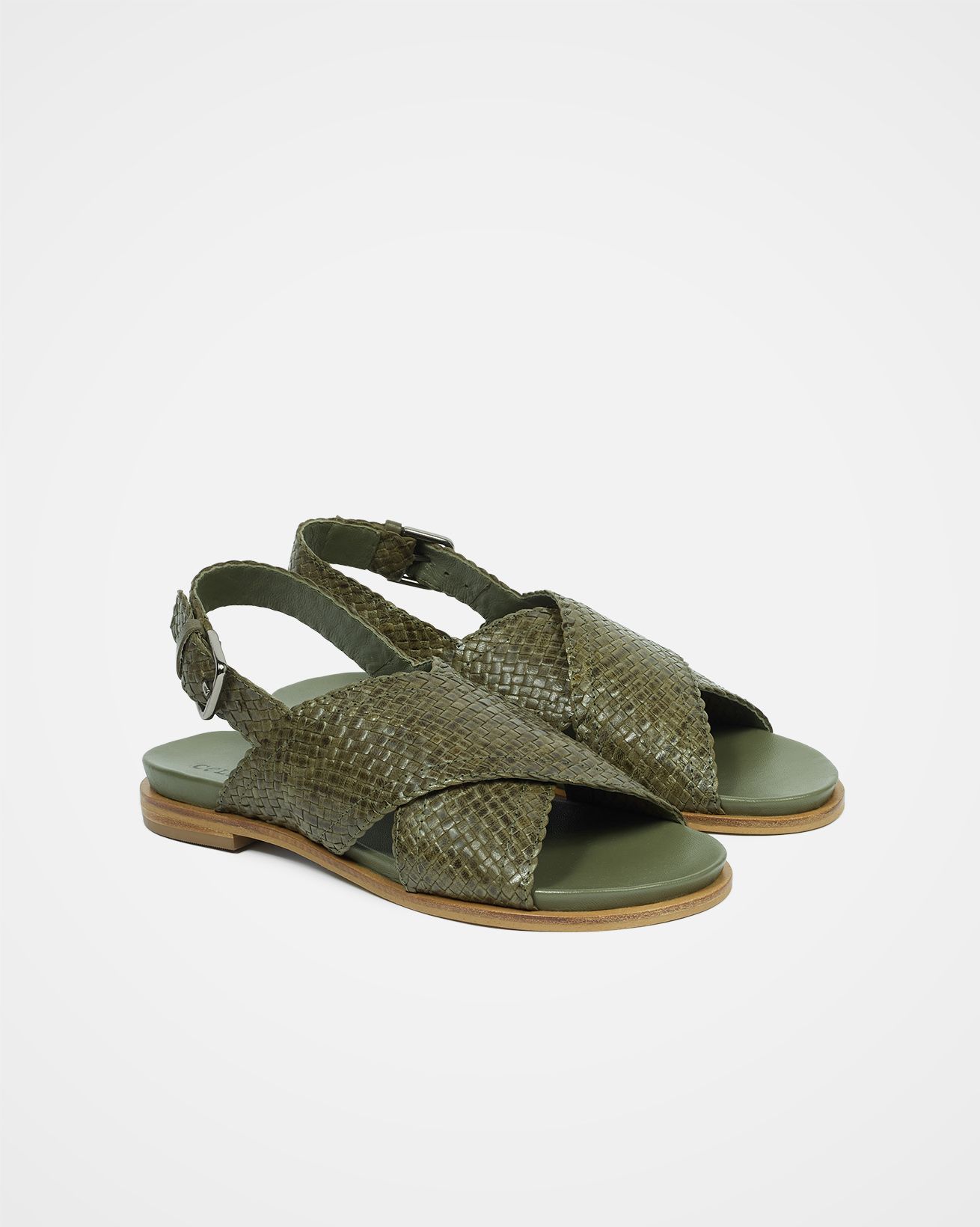 This sandal features a clean flat sole with a low-line heel block, which has been cushioned internally to combine style and comfort seamlessly. Crafted with hand-woven leather, it boasts a premium, hand-burnished finish. The straps cross over the front of the foot for a secure fit, with a back strap and metal buckle fastening at the side. The sandal is lined in smooth leather, ensuring a comfortable and supportive feel. Elevate your summer style with the Leather Woven Crossover Sandal.