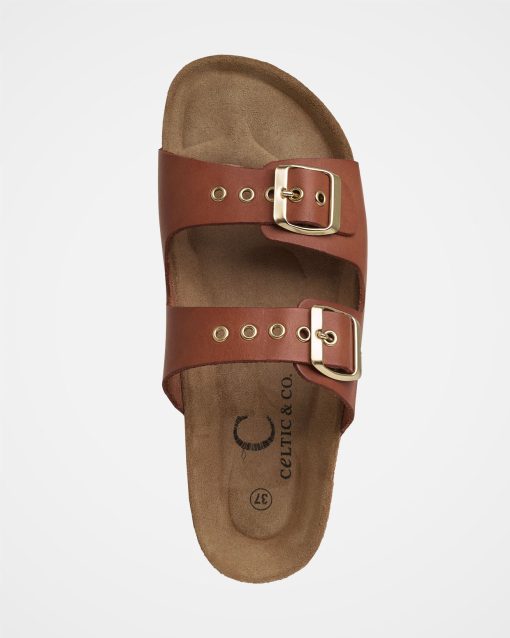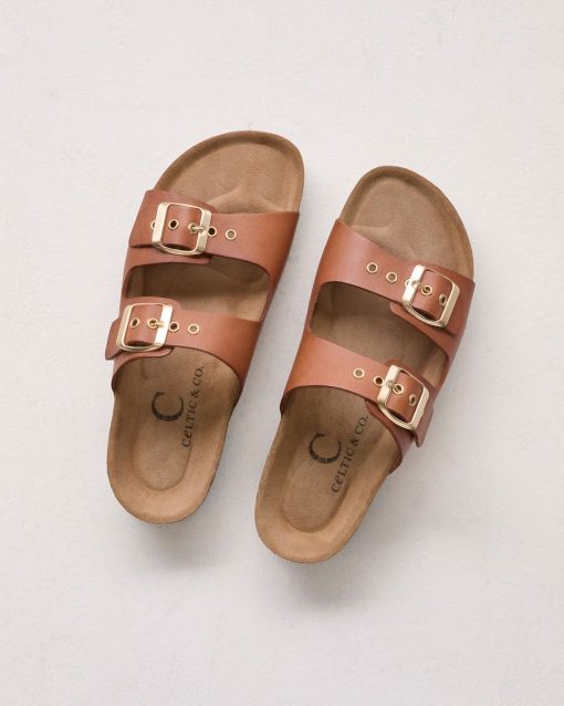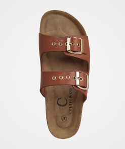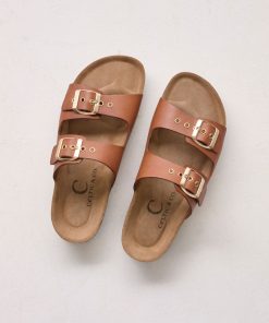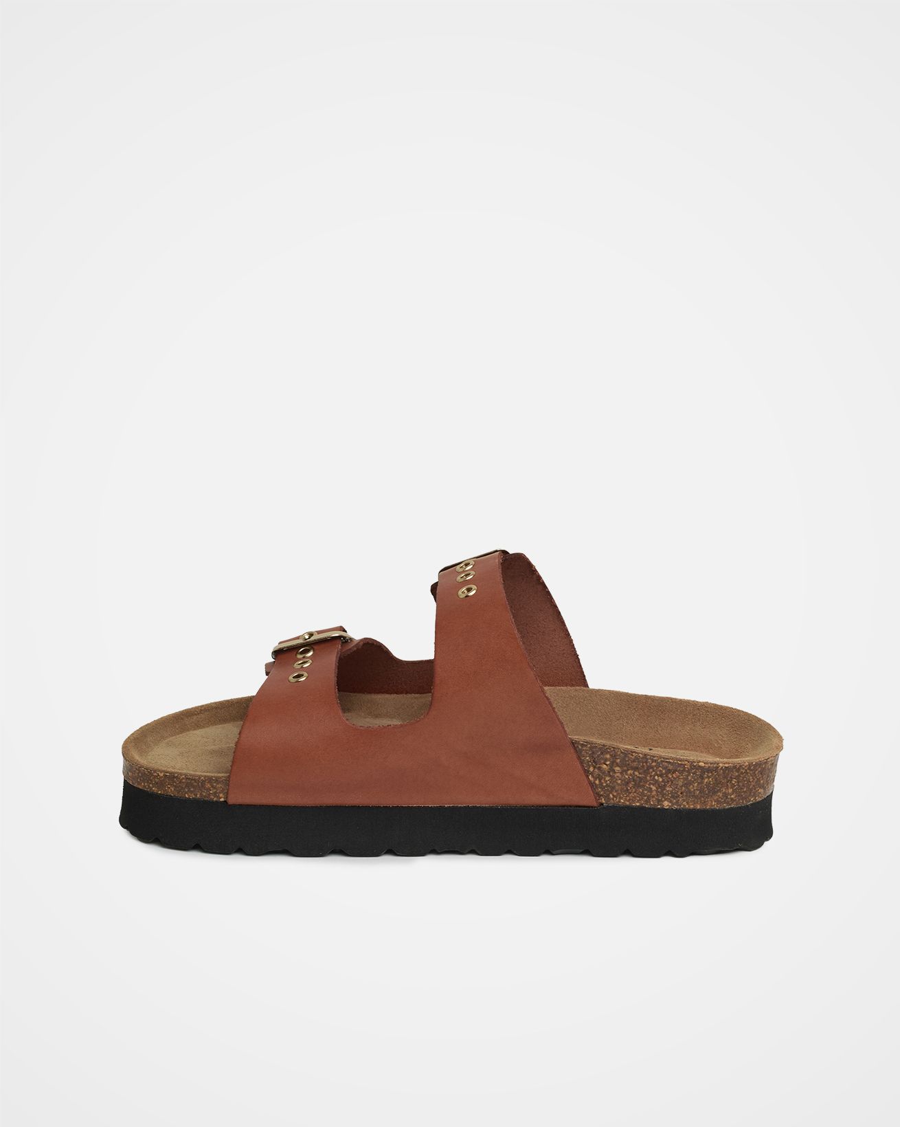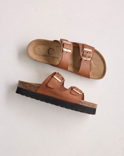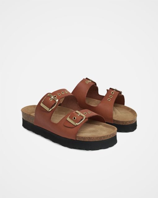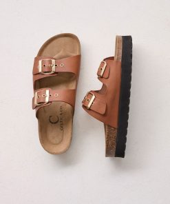 These slip-on sandals feature double buckled straps for a secure fit and effortless style. With a mid-height platform sole, they provide comfort and elevation, making them a perfect choice for casual outings.