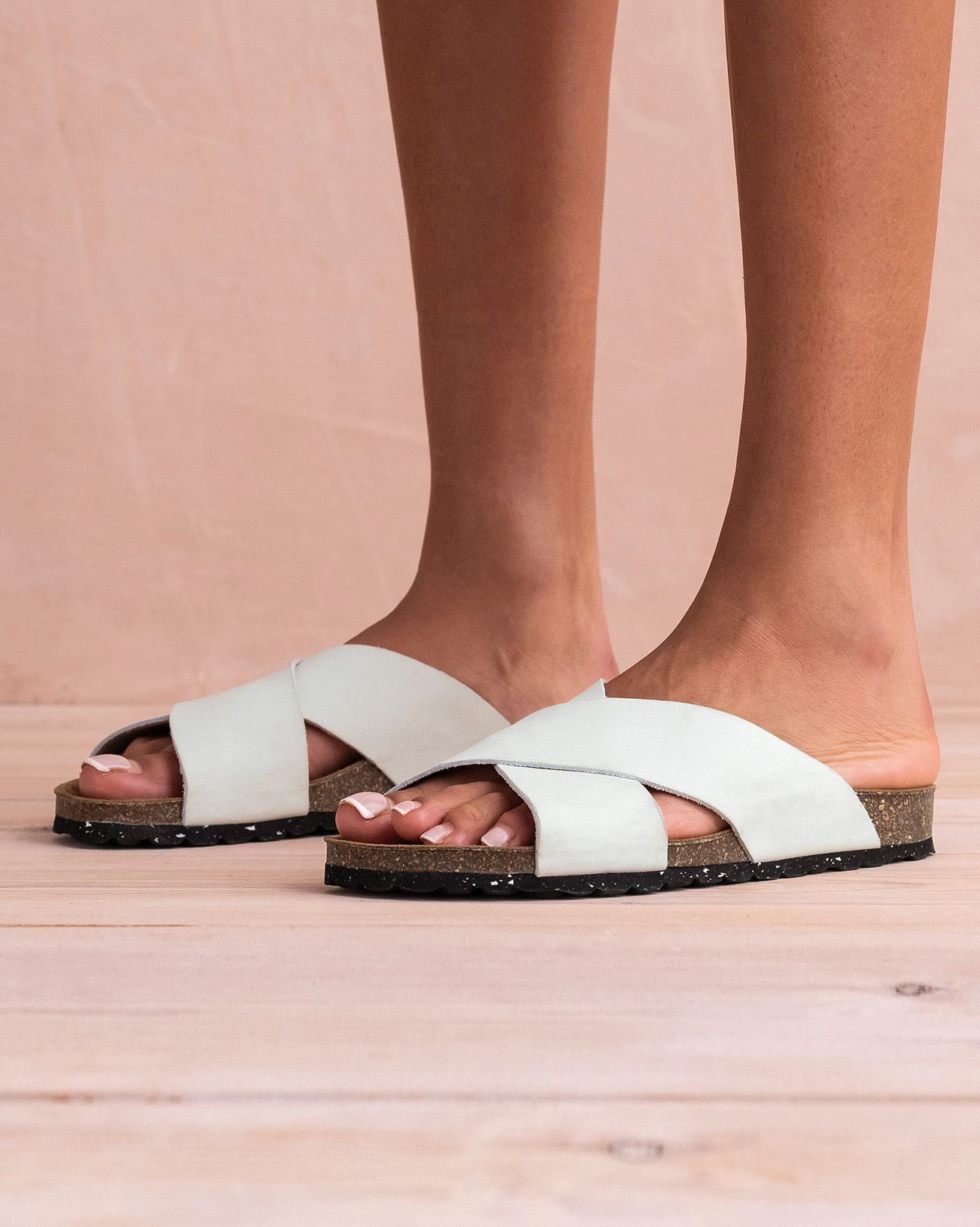 Celtic & Co Women’s Footwear Nubuck Crossover Slides | White