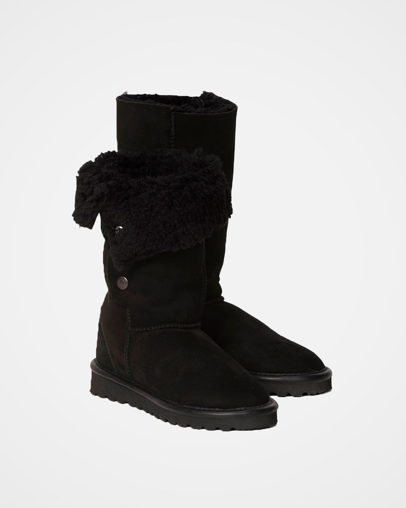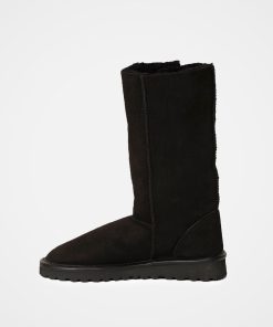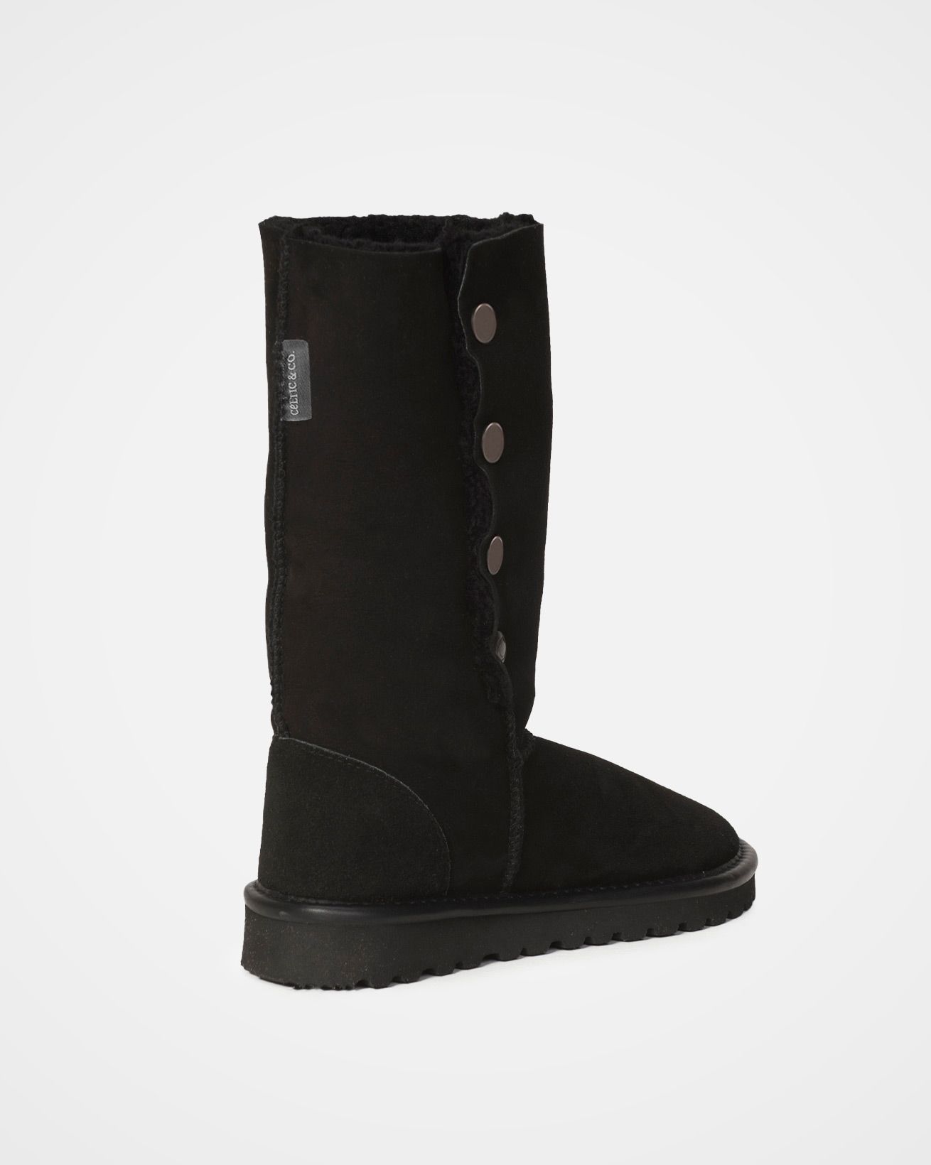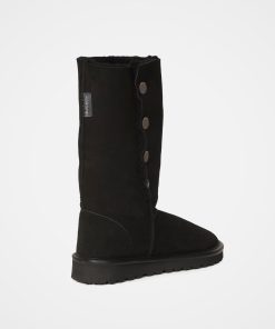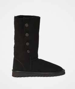 Celtic & Co Women’s Footwear Popper Sheepskin Boots – Calf Height | Black