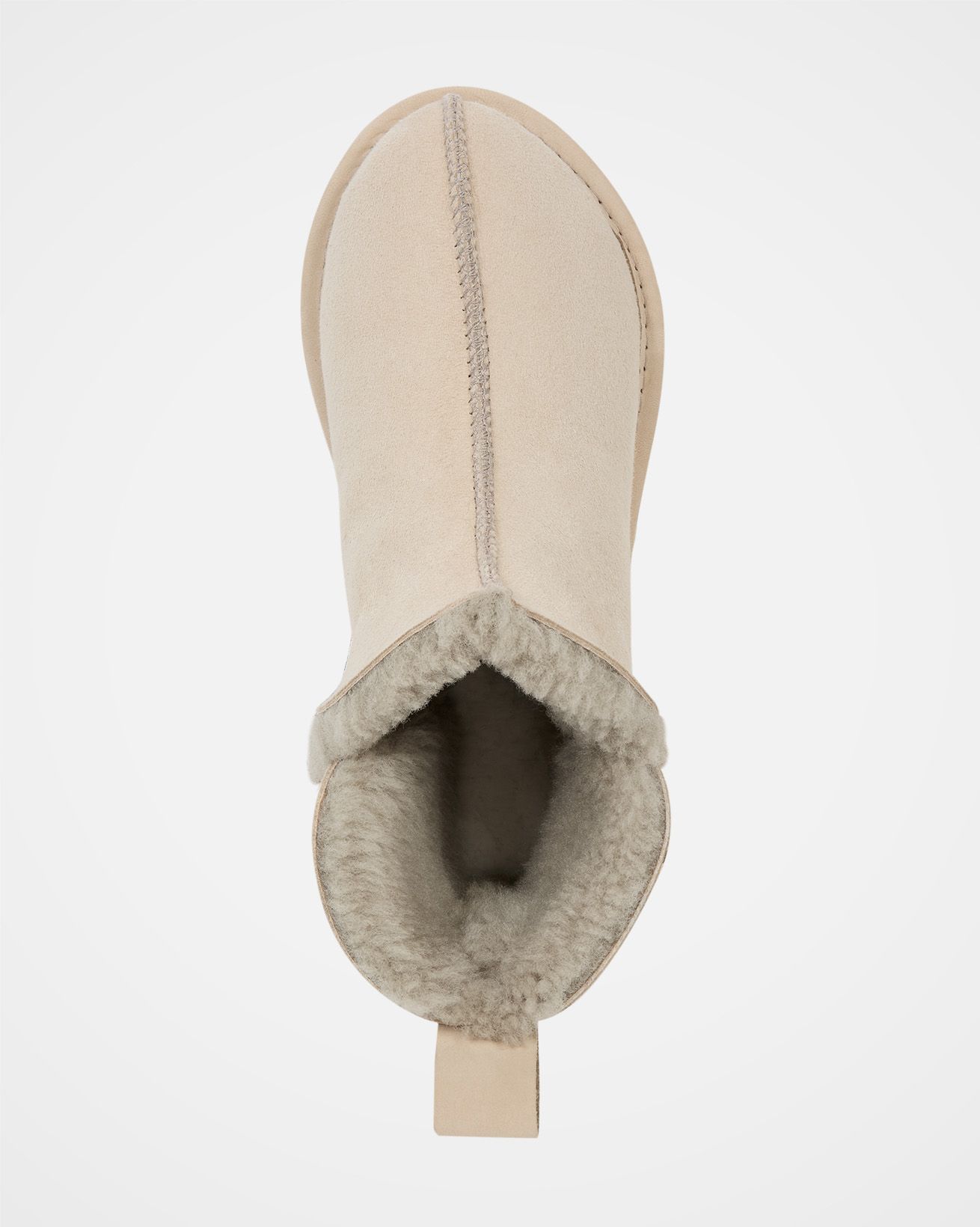 These ankle-length slipper boots are crafted from 100% sheepskin for ultimate comfort and warmth. Featuring a split at the opening, the front can be folded down for versatile styling. The convenient pull tab at the back also makes them easy to slip on.