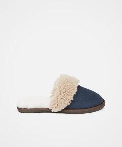 Grosgrain trims add a touch of texture around the indoor/outdoor sole, and the fluffy inner takes pride of place at the turnback cuff.