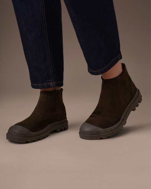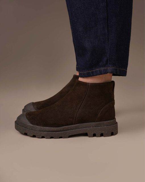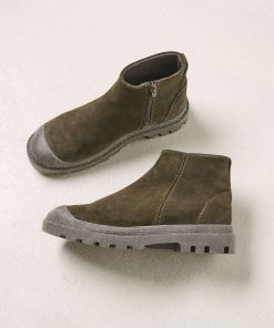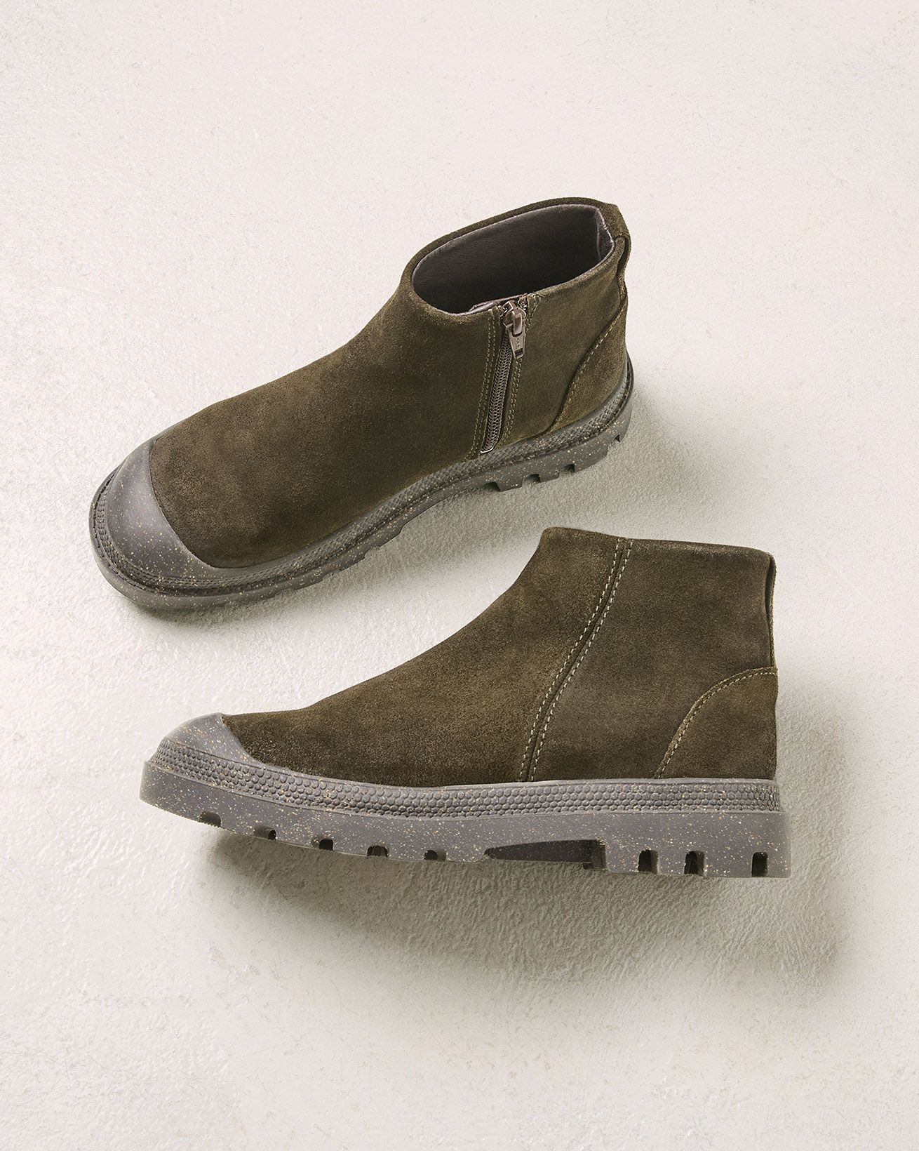 These ankle boots feature an upper of Cow Suede and a full Leather lining. They include a full-length zip on the inner side, a chunky cleated sole with toe cap detail.