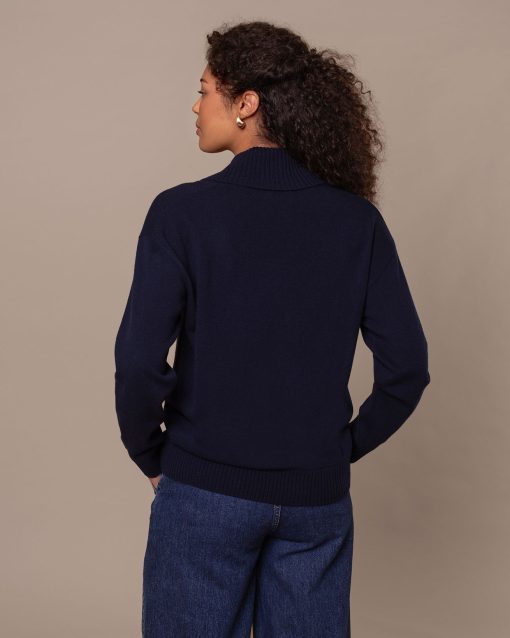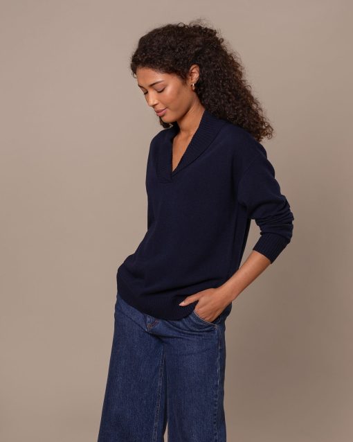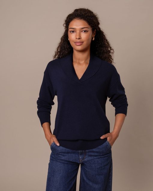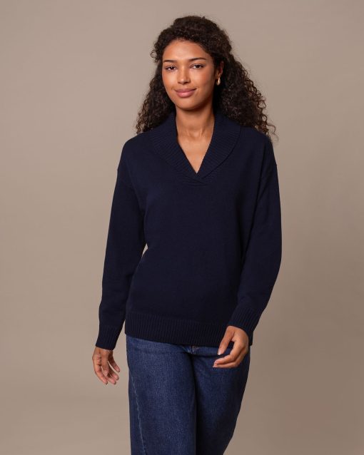 Knitted in soft lambswool, this jumper features a ribbed shawl collar, drop shoulders and a relaxed, longer-line fit finishing at the top of the thigh. Finished with ribbed hem and cuffs for added structure.