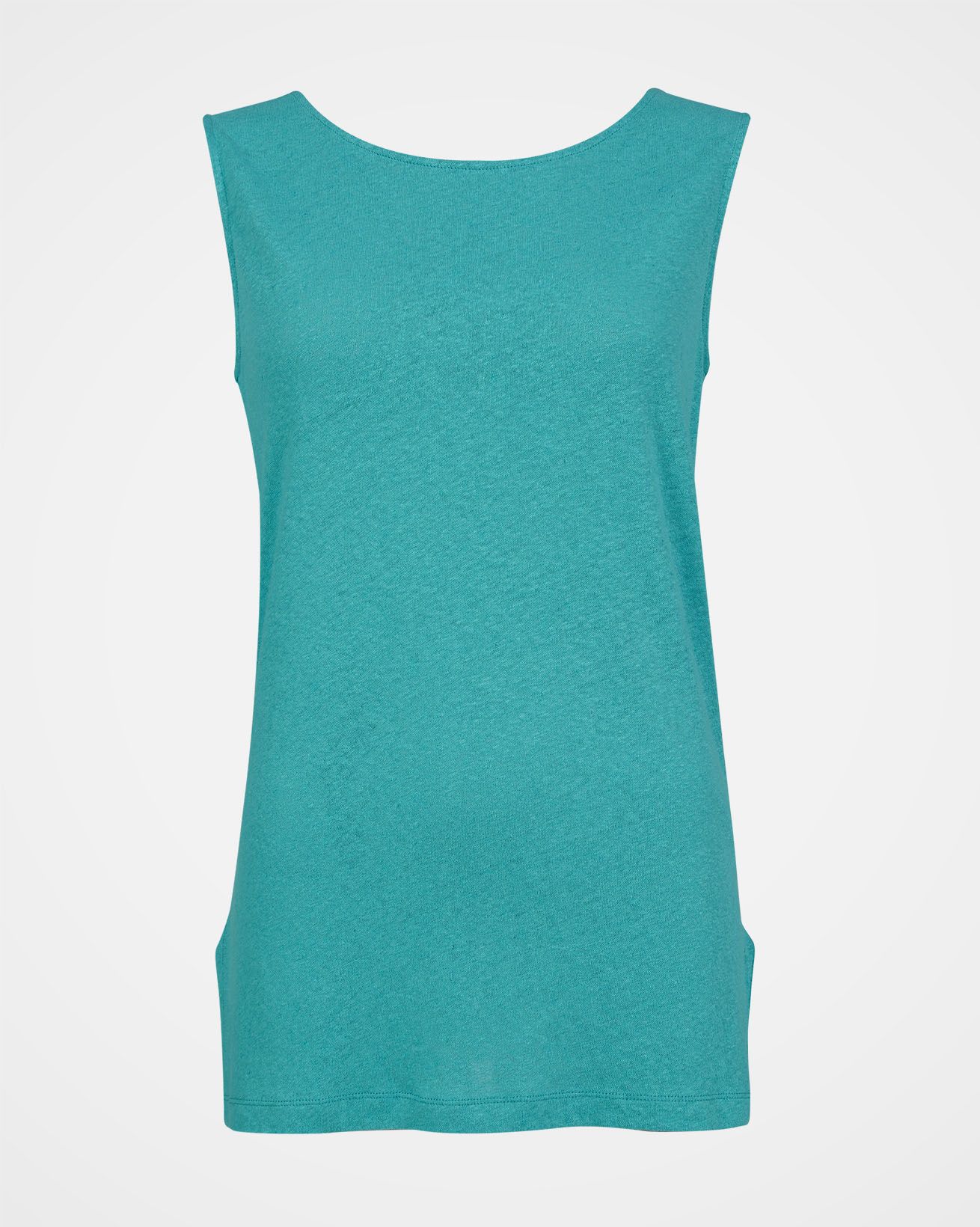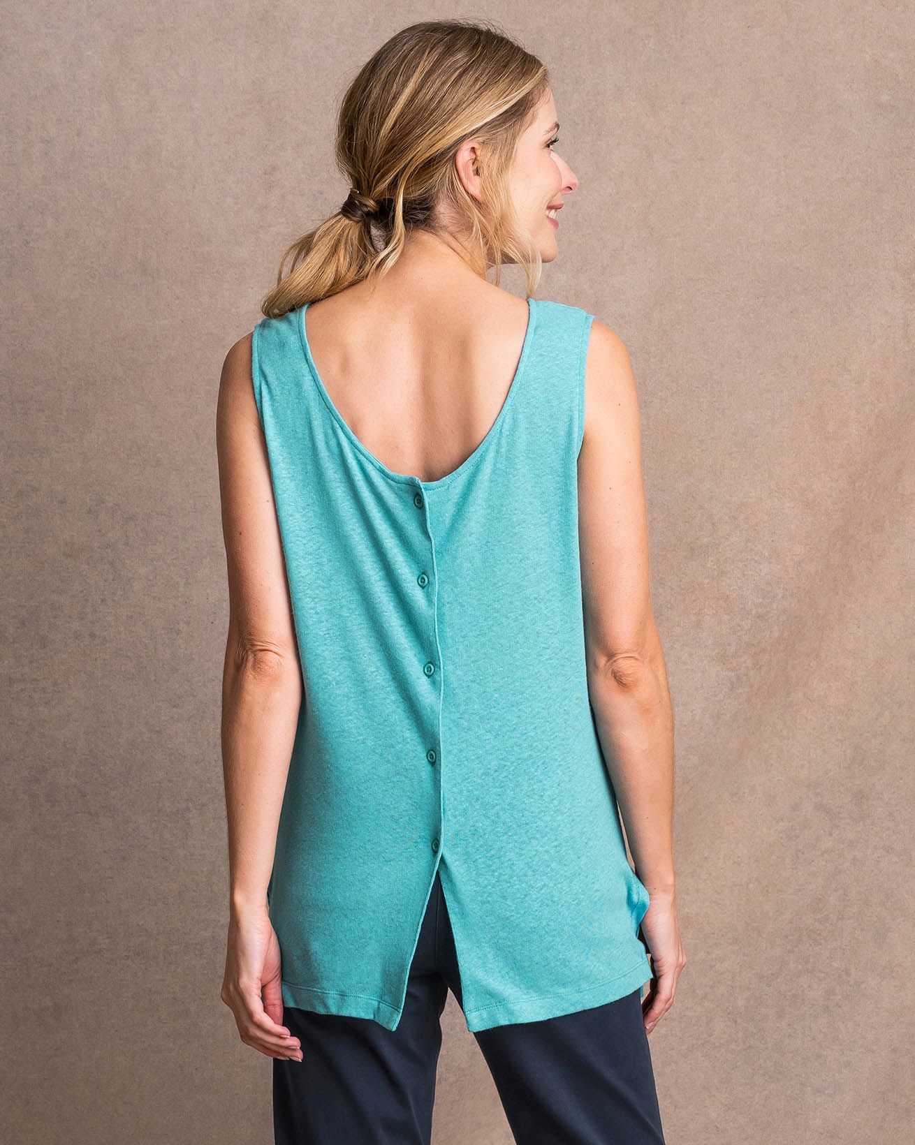 Our designers have taken inspiration from our button-back dress to create this sleeveless top, finishing it with a scoop neckline front and back, and adding side slits for ease.