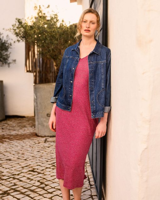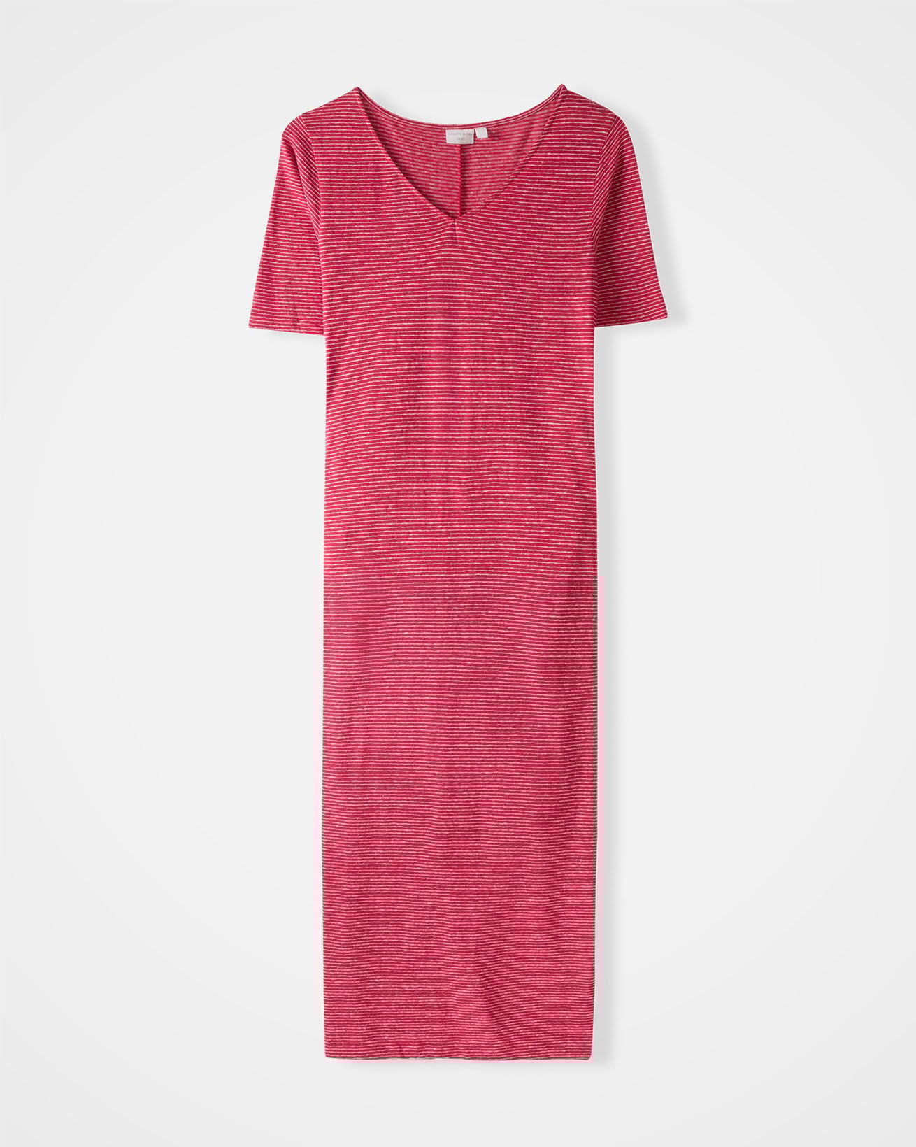 OurLinen Blend V Neck Midi Dressoffers a new dress shape in our classic linen and organic cotton blend jersey, which features a beautiful textured slub in the fabric. The cocoon-shaped dress with half-length slim-fitting sleeves and a split in the back centre hem offers ease of movement. Featuring practical pockets in the side seams and a flattering midi length, this dress offers an elegant and classic addition to your wardrobe.