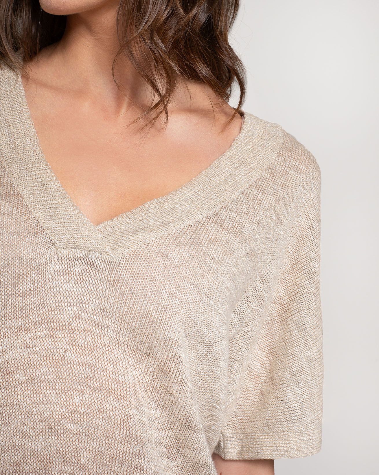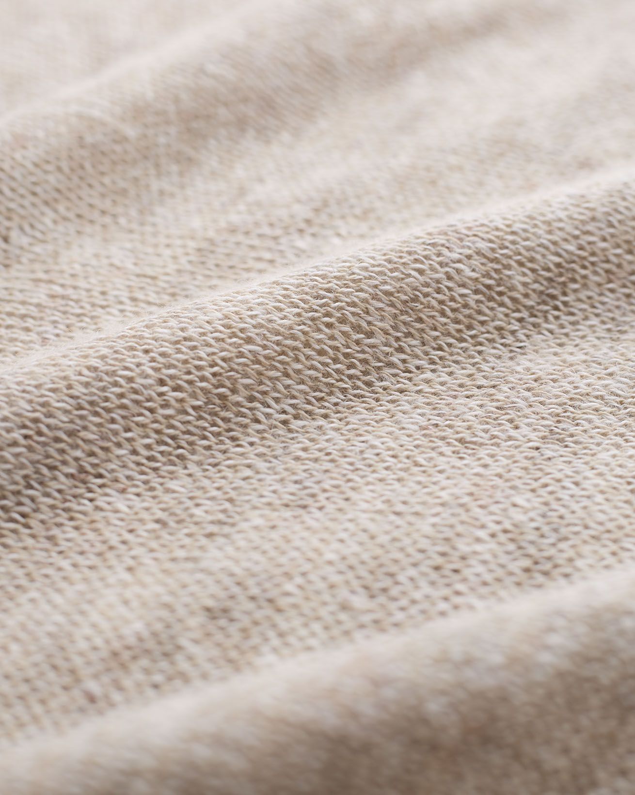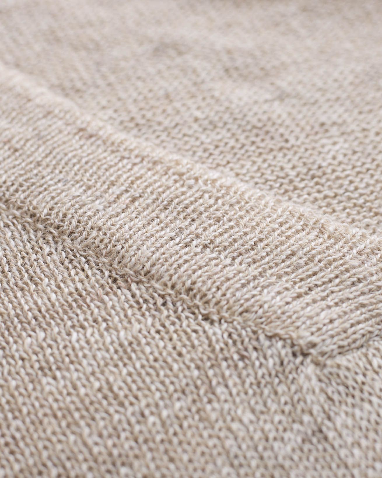 This summer yarn is a blend of European-grown flax linen and organic cotton, designed for a light and breathable feel. The yarn features a soft texture with a slight sheen, making it suitable for warm-weather garments. The linen provides a crisp and cooling effect, while the organic cotton adds softness.