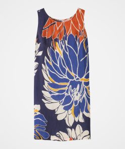Celtic & Co Women’s Linen Sleeveless Knee Length Shift Dress | Chrysanthemum Print