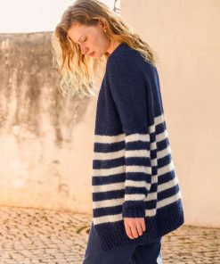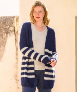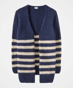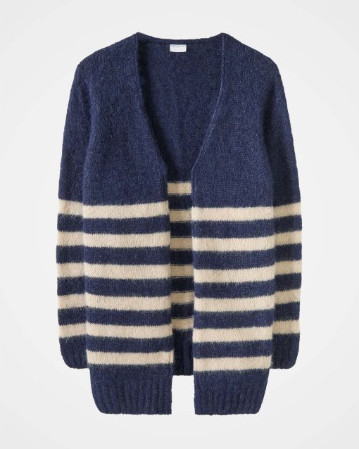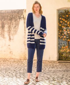 Celtic & Co Women’s Longline Edge To Edge Cardigan | Navy & Oatmeal
