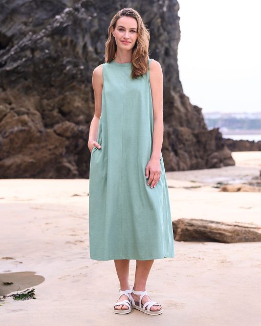 Celtic & Co Women’s Organic Cotton Pleated Back Midi Dress | Sage