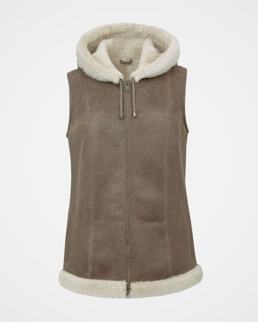 Celtic & Co Women’s Outwear Hooded Sheepskin Bodywarmer | Walnut
