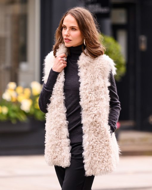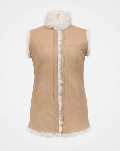 Celtic & Co Women’s Outwear Reversible Curly Toscana Gilet | Camel & Cream