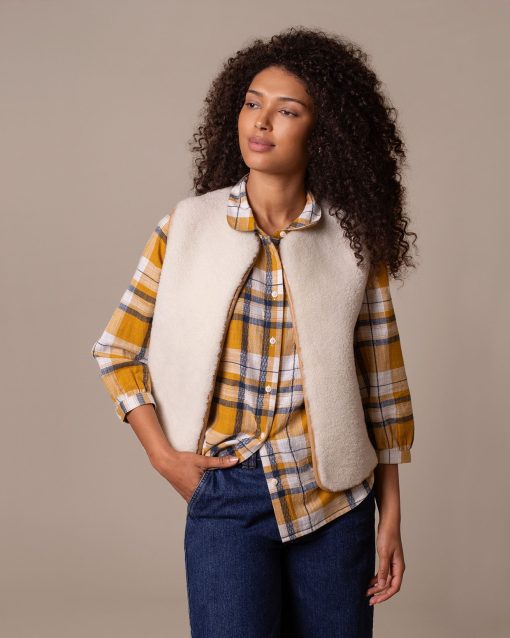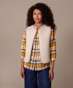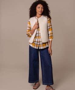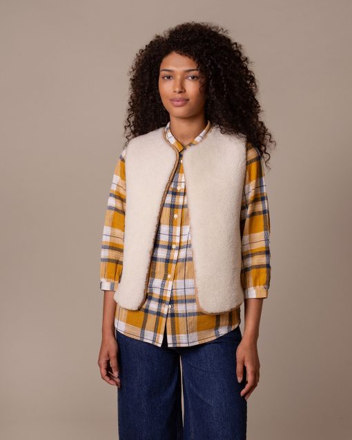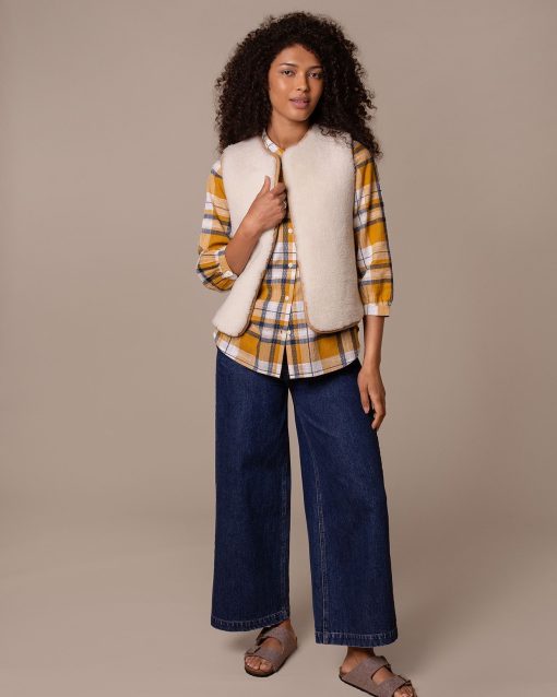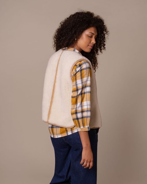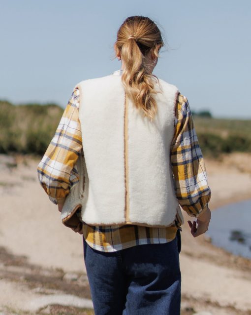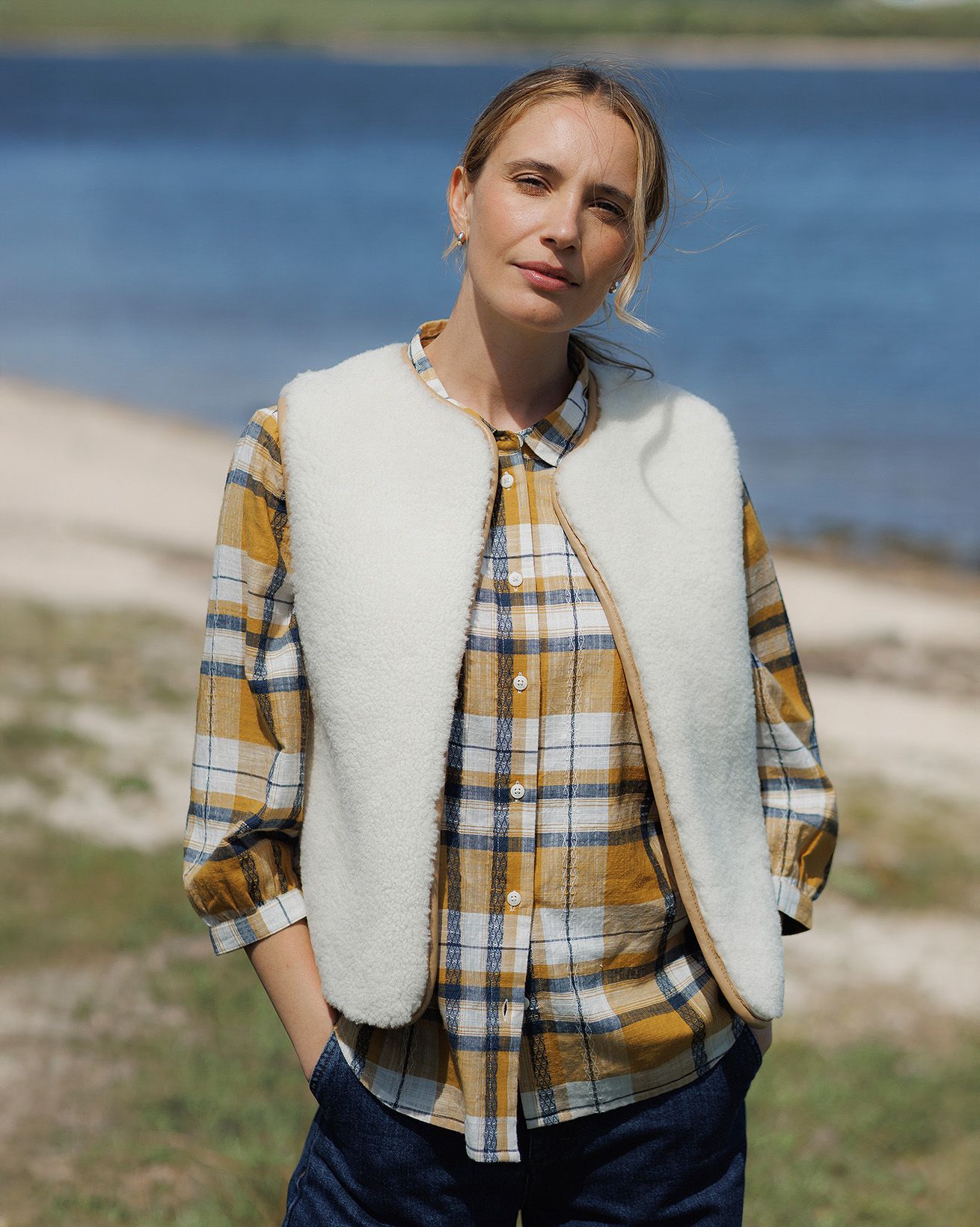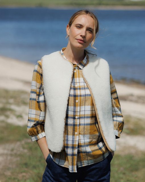 Celtic & Co Women’s Outwear Reversible Sheepskin Gilet | Camel & Ecru