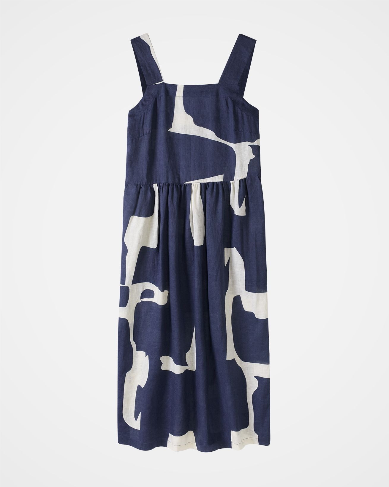 Featuring a square neckline and a gently flared skirt gathered at the waist, this midi dress offers a flattering silhouette. The buttoned side placket adds a distinctive touch, making it a go-to choice for a variety of occasions.