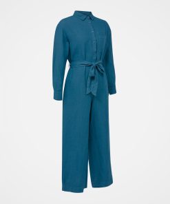 A long sleeved, button through, relaxed linen jumpsuit that is light, airy and breathable. The oversized, comfy fit can be belted at the waist to add definition. It is garment washed to add an extra soft feel to the fabric. Featuring cuff and button detail, this versatile outfit can be dressed up or down with accessories to transition seamlessly from day to night.