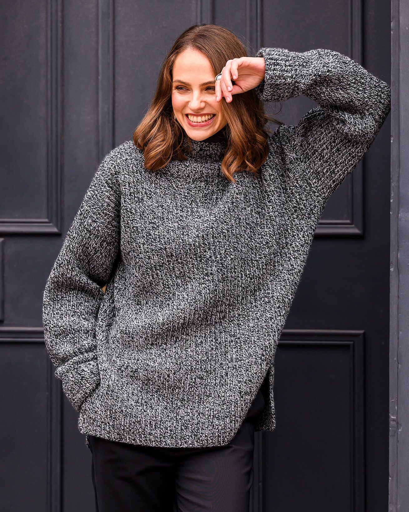 This tunic-length jumper boasts side splits, a cosy funnel neckline and ribbed stitch design for texture. Knitted in Itailan wool which has been saved from incineration, this jumper offers warmth, distinctive style andresponsible sourcing.