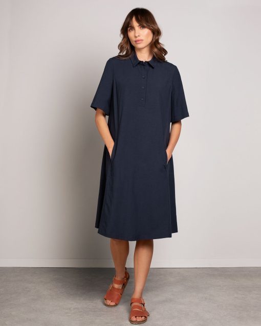 With a collared neckline and flattering swing shape, this dress is designed for effortless style. The half-length sleeves provide added comfort, while the blend of viscose and linen ensures a soft feel, perfect for both casual wear or occasions.