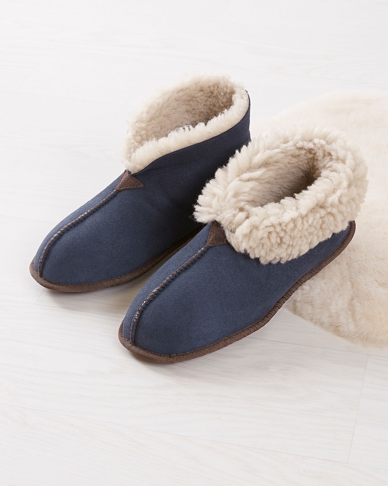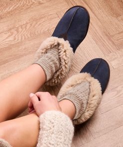 Our bestselling ladies sheepskin bootee has been given an upgrade, taking soft, cosy slippers to a whole new level. Crafted from 100% British sheepskin giving a luxurious look and feel, plus natural temperature regulation making them the perfect year-round slipper. Wear turned down to reveal the woollen cuff or rolled up for cosy ankles. New features include a soft suede sole with textured grippy panels on the bottom.