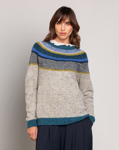 Featuring colourful patterns at the yoke, and solid accents at the hem and cuffs, it’s packed with rugged personality and makes a toasty layer for bracing walks along the coast.