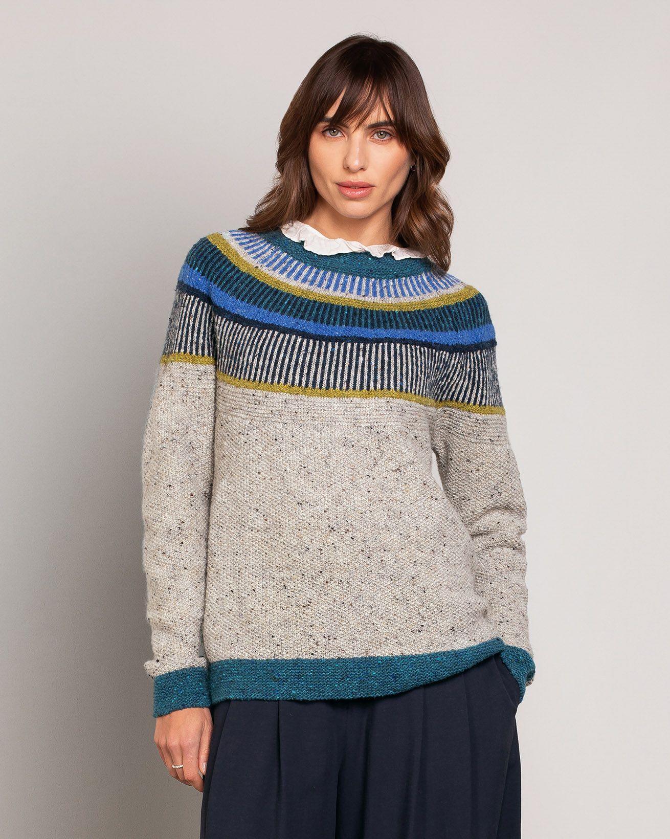 Made from85% Donegal, 15% Pure New Wool:Combining the luxury of pure new wool with characterful flecks, our Donegal wool consists of a base blend of up to seven different colours. A further seven or eight solid flecks add further contrast along the yarn’s surface, generating a pleasingly rustic effect with a super-soft and light cosiness.