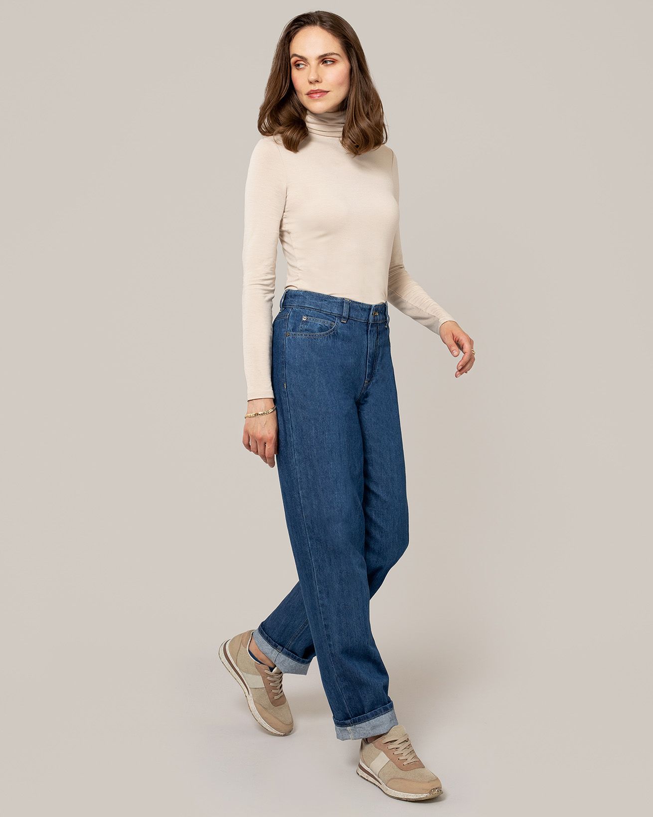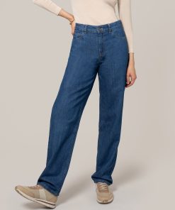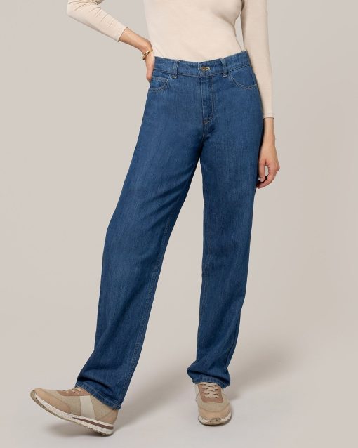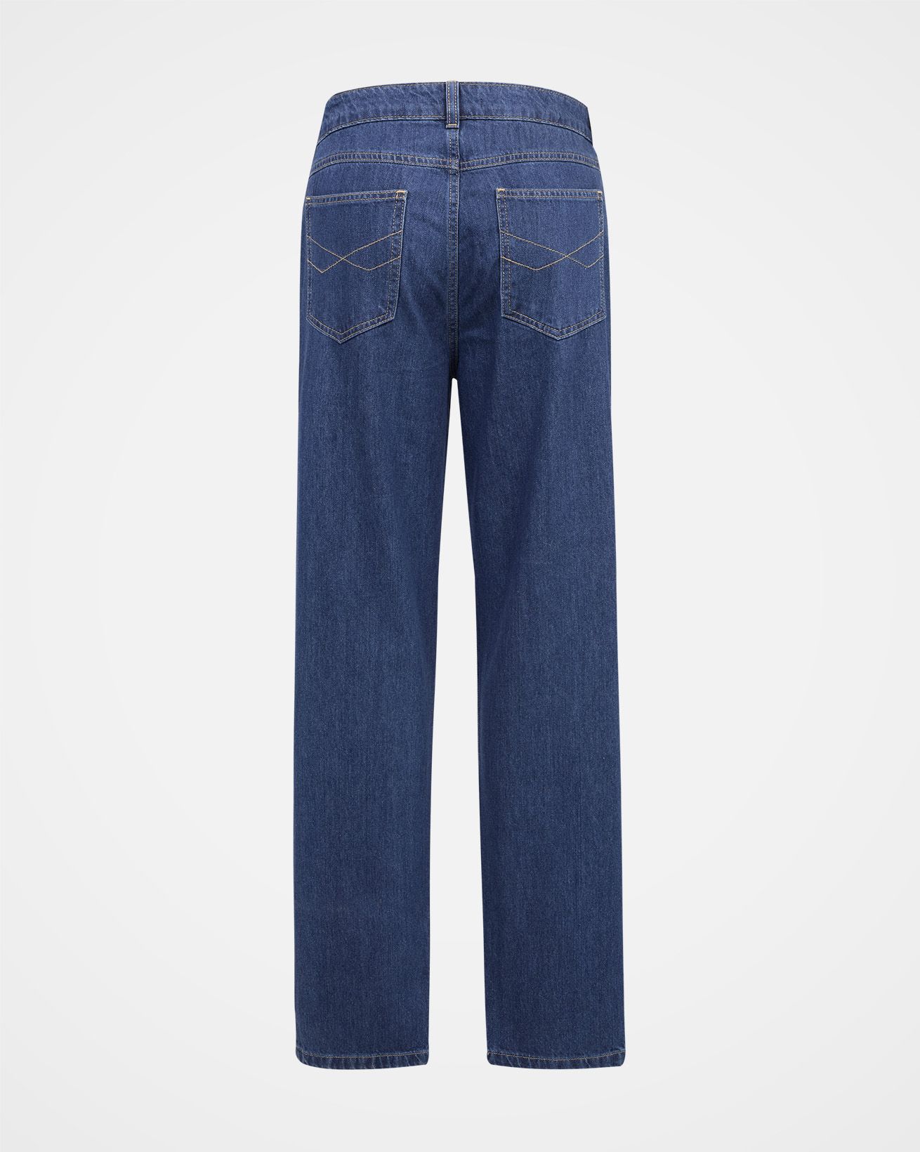 Crafted from 100% cotton denim, these straight-leg jeans feature a mid-rise waist and a classic straight leg silhouette. Complete with traditional denim five-pocket styling, they are an easy wear, with timeless versatility.