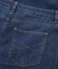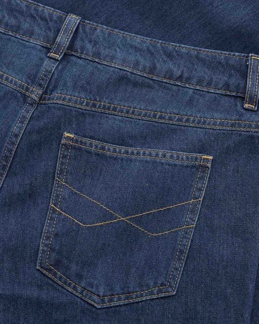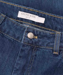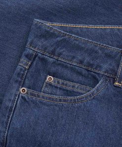 - Classic Denim Five Pocket Styling With Metal Stud and Zip