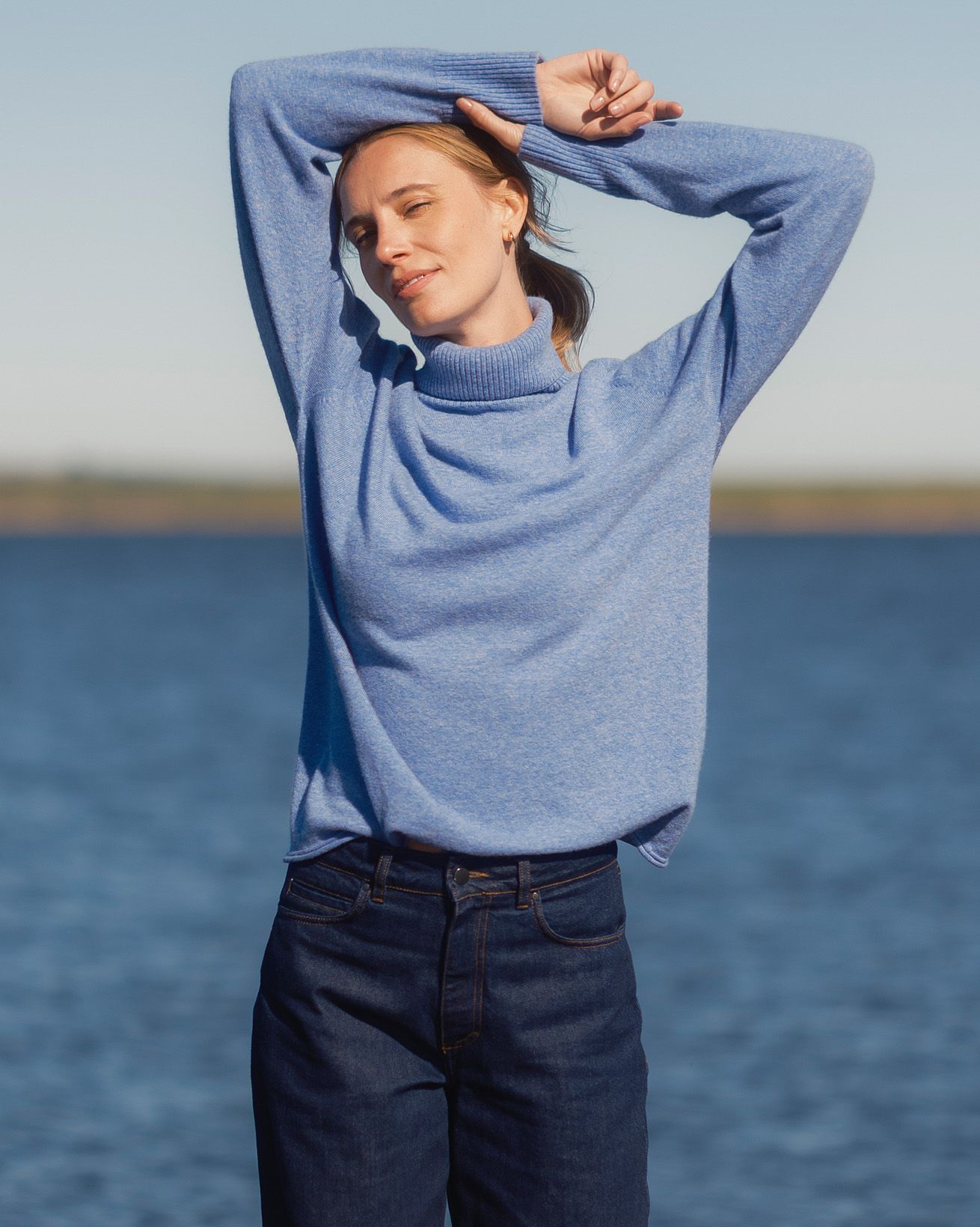 Celtic & Co Women’s Supersoft Slouch Roll Neck Jumper | Cornflower Blue