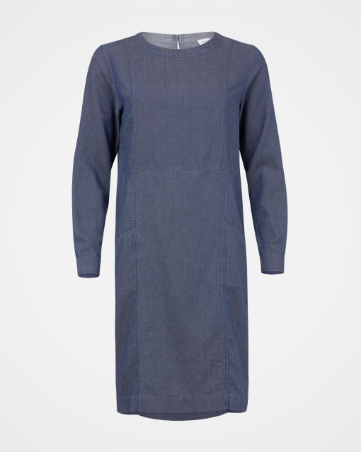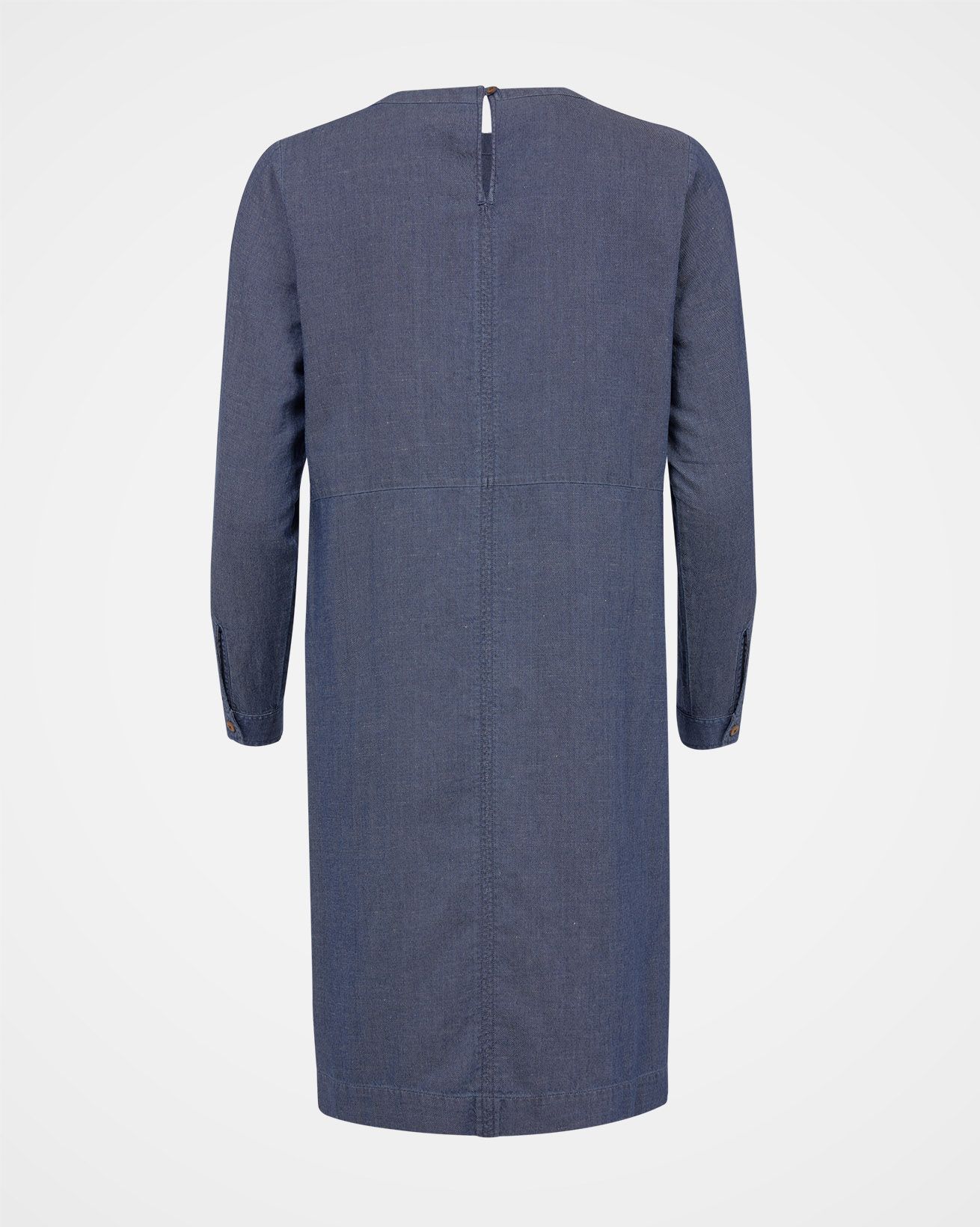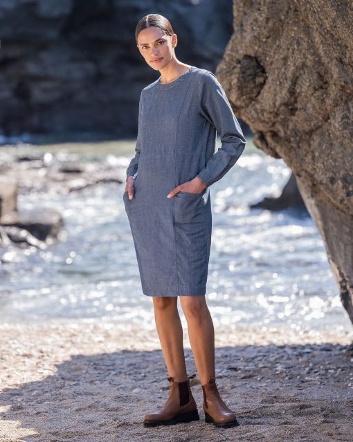 The twill knee length shift dress has a relaxed, loose fit. The collarless, round neckline has a pretty keyhole detail at the back, fastening with a button and loop. Vertical princess seams run down the front of the garment, and we’ve added twin stitched seam detail and discreet, angled patch pockets on the side of the hips. Designed to be the perfect day dress, it has the longevity to be worn through autumn and winter with thick tights and leather boots, before peeling back the layers and being worn alone in spring and on cooler summer days.