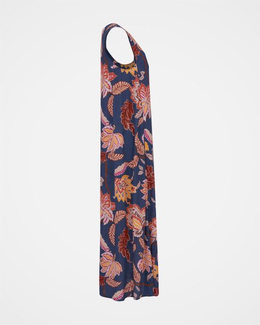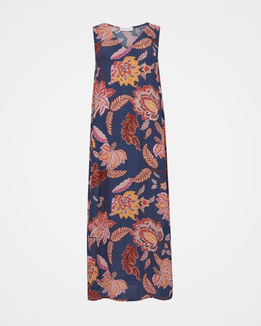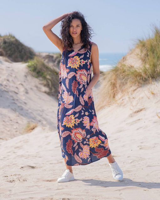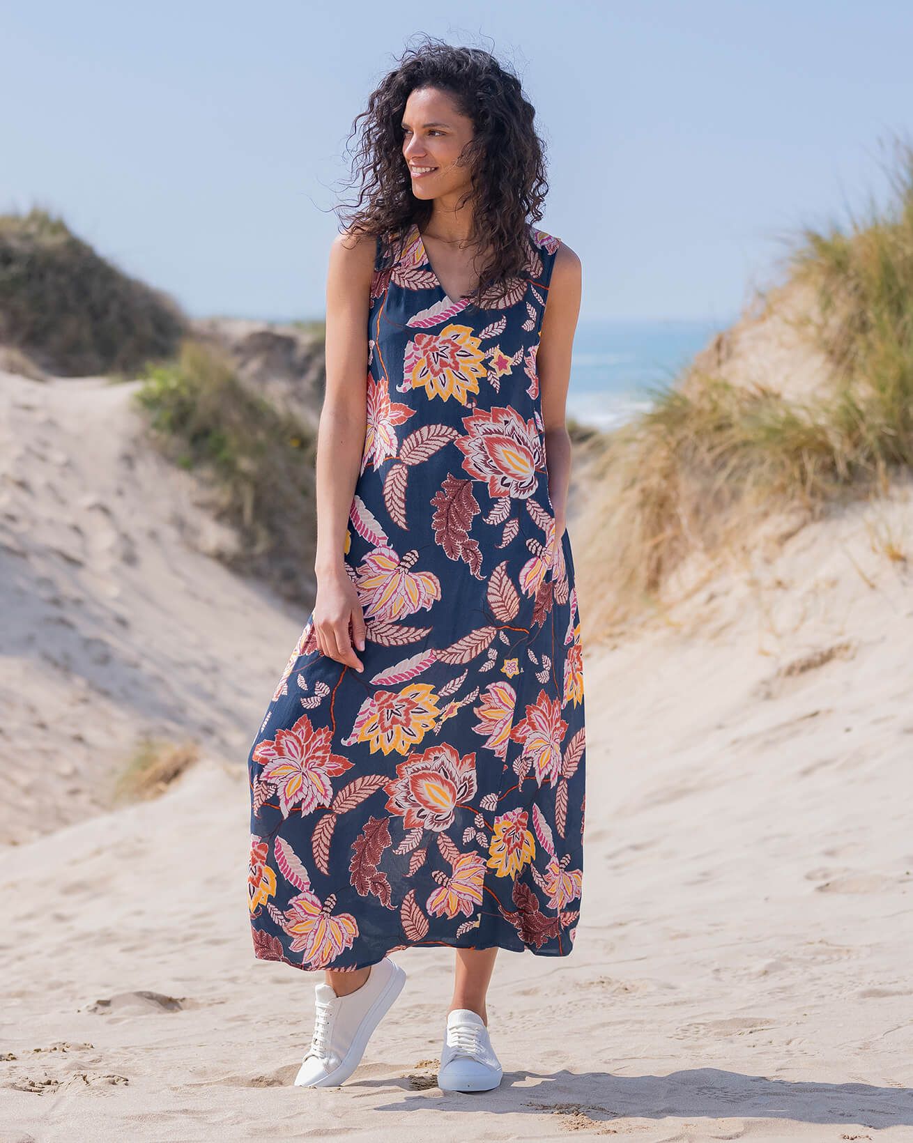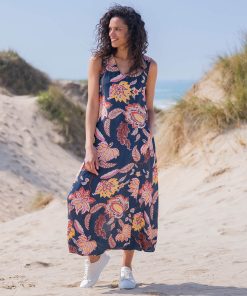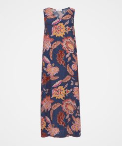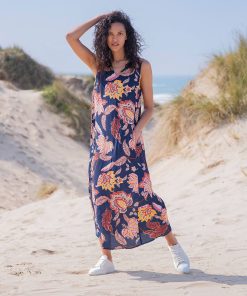 This sleeveless midi dress has a loose and airy fit which makes it perfect for summer. Featuring a v-shape neckline and made of a crepe frabric in a fun floral print, this dress is easy to wear and also fun to style for daytime or evening.